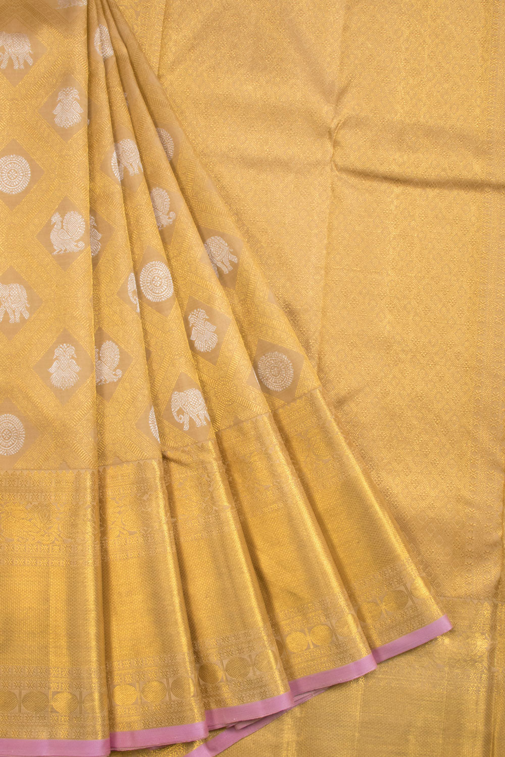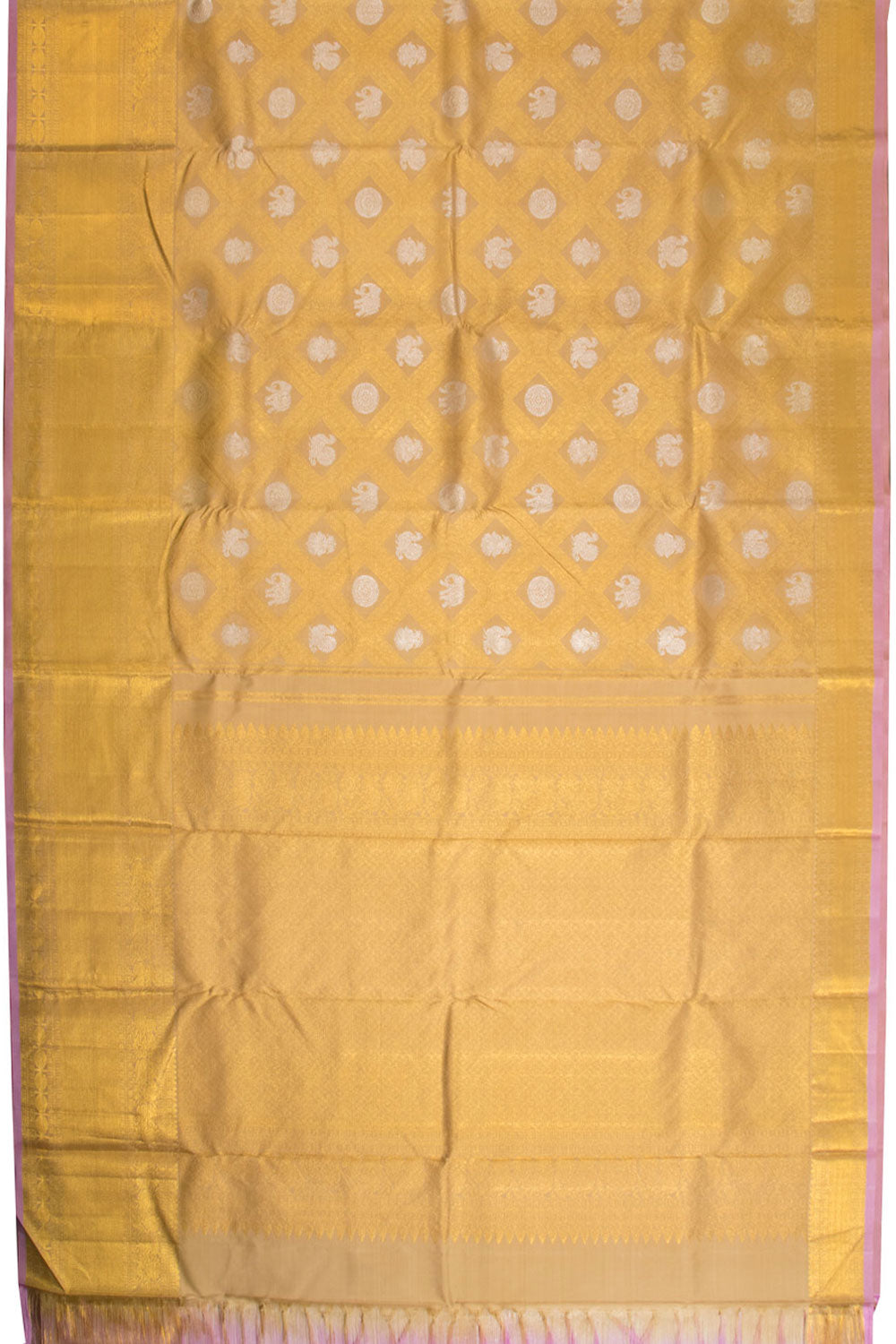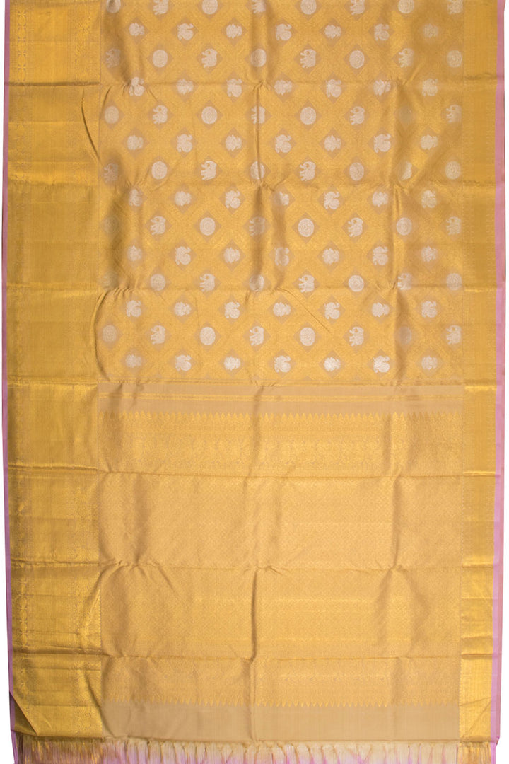 Elevate your wedding look with our Gold Handloom Bridal Kanjivaram Silk Saree. Made from high-quality silk, this saree is handloomed with intricate golden designs, perfect for your special day. Feel luxurious and confident as you drape this elegant saree. Limited stock, so get yours now!