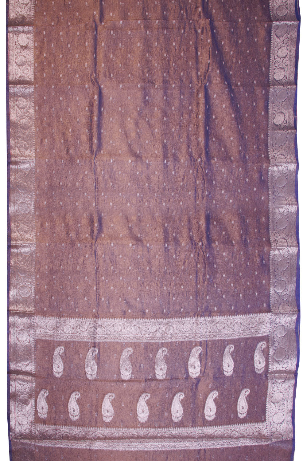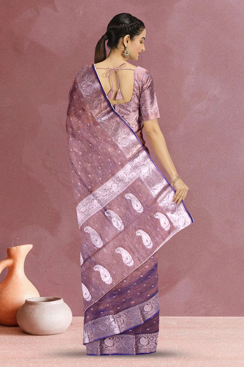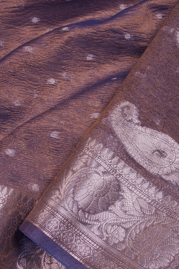 This saree is truly versatile, perfect for any occasion. Its unique crushed tissue organza material and stunning golden purple color will make you stand out in any crowd.