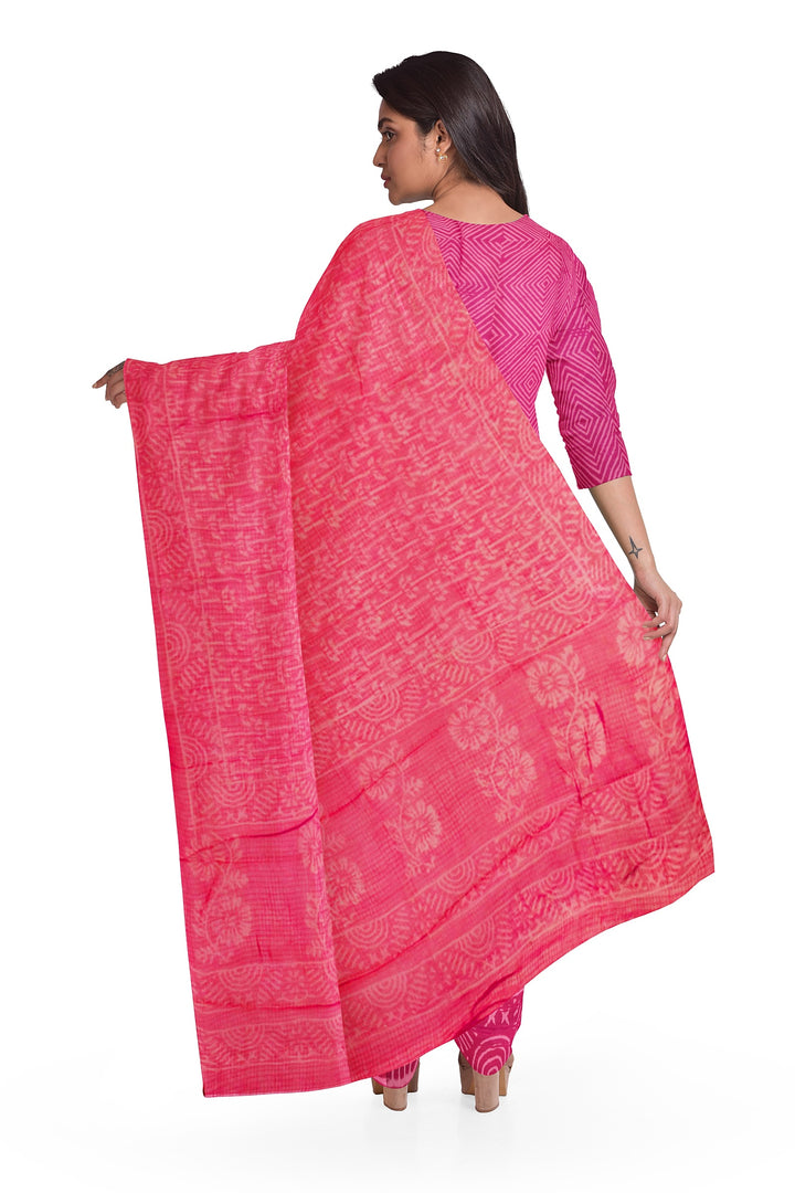 Pink 3-Piece Mulmul Cotton Salwar Suit Material With Kota Dupatta 10070105