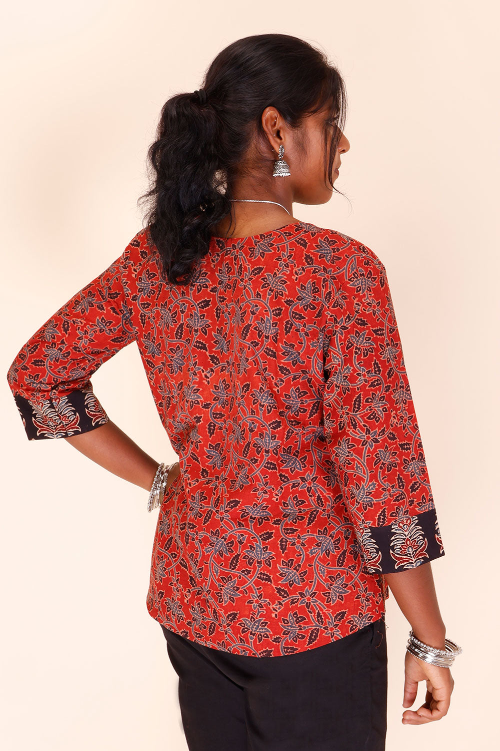 Hand Block Printed Cotton Top with Floral Design 10048573 - 40Product Details