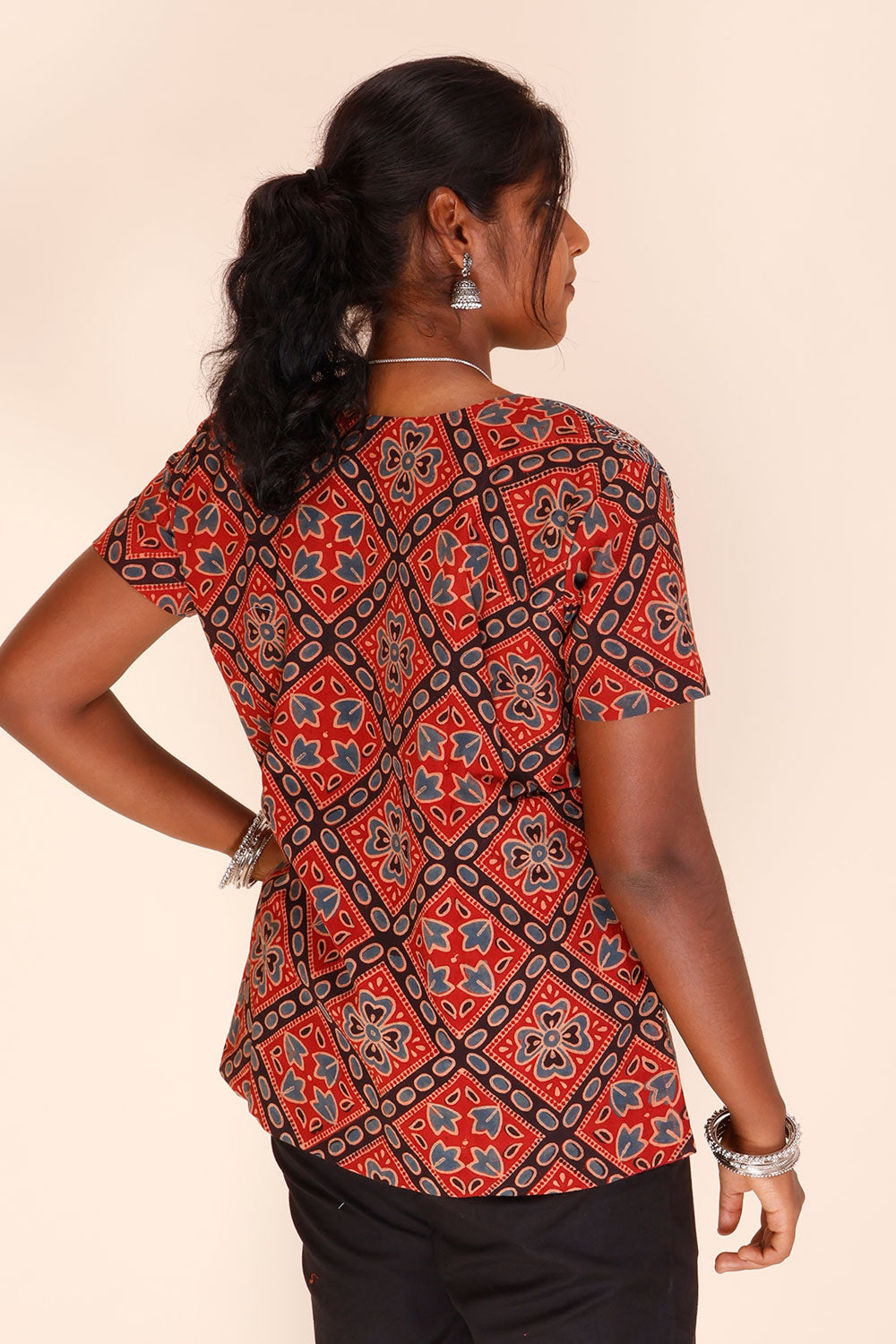 This beautiful handcrafted bagh printed modal short top redefines everyday casual with its maroon and green tones. Its soft, lightweight material will keep you comfortable all season long.