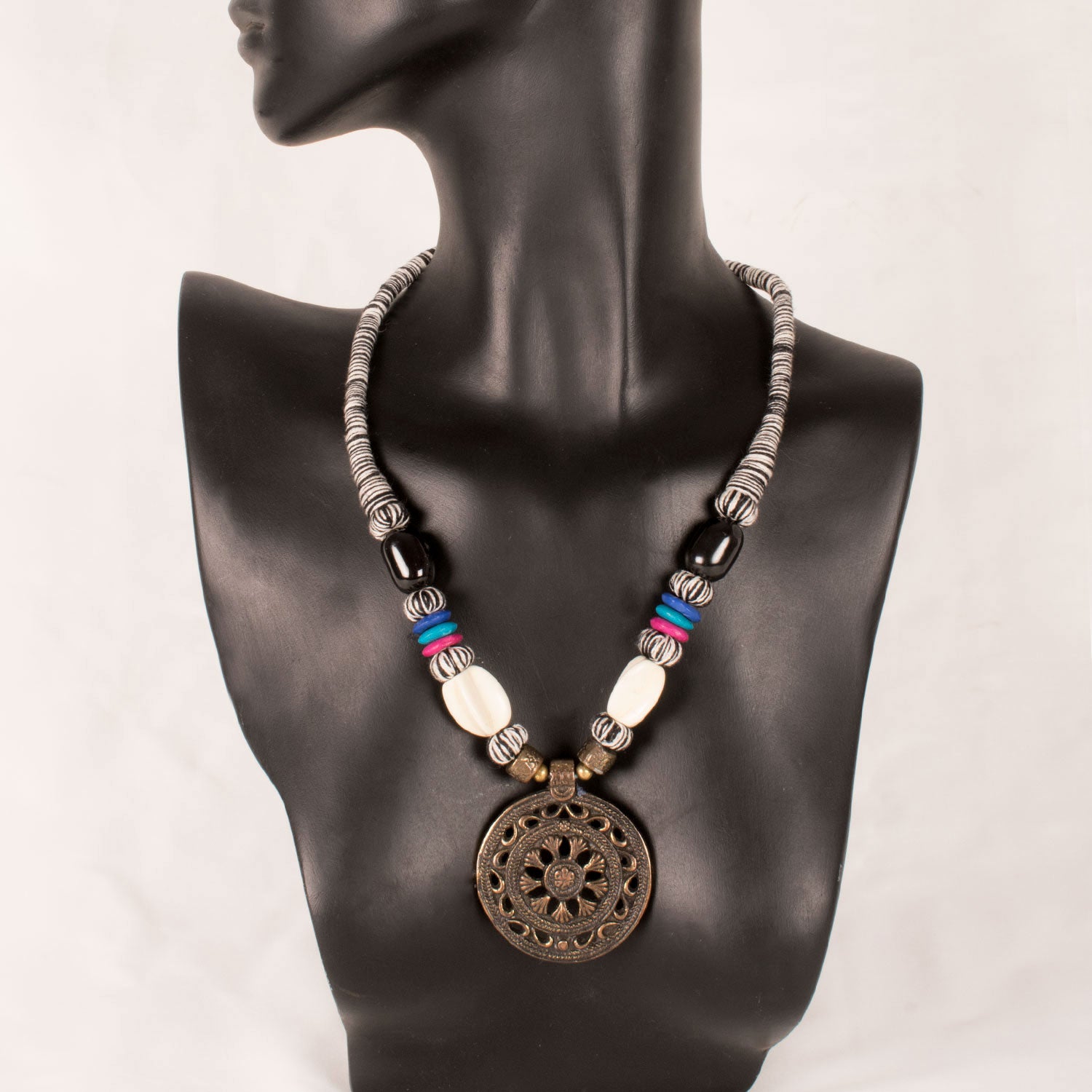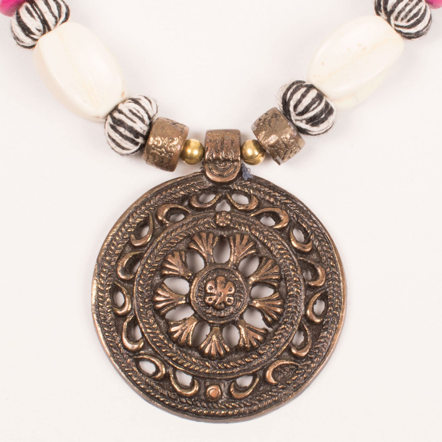 Handcrafted Silk Thread Fashion Necklace With Brass Pendant 10054926