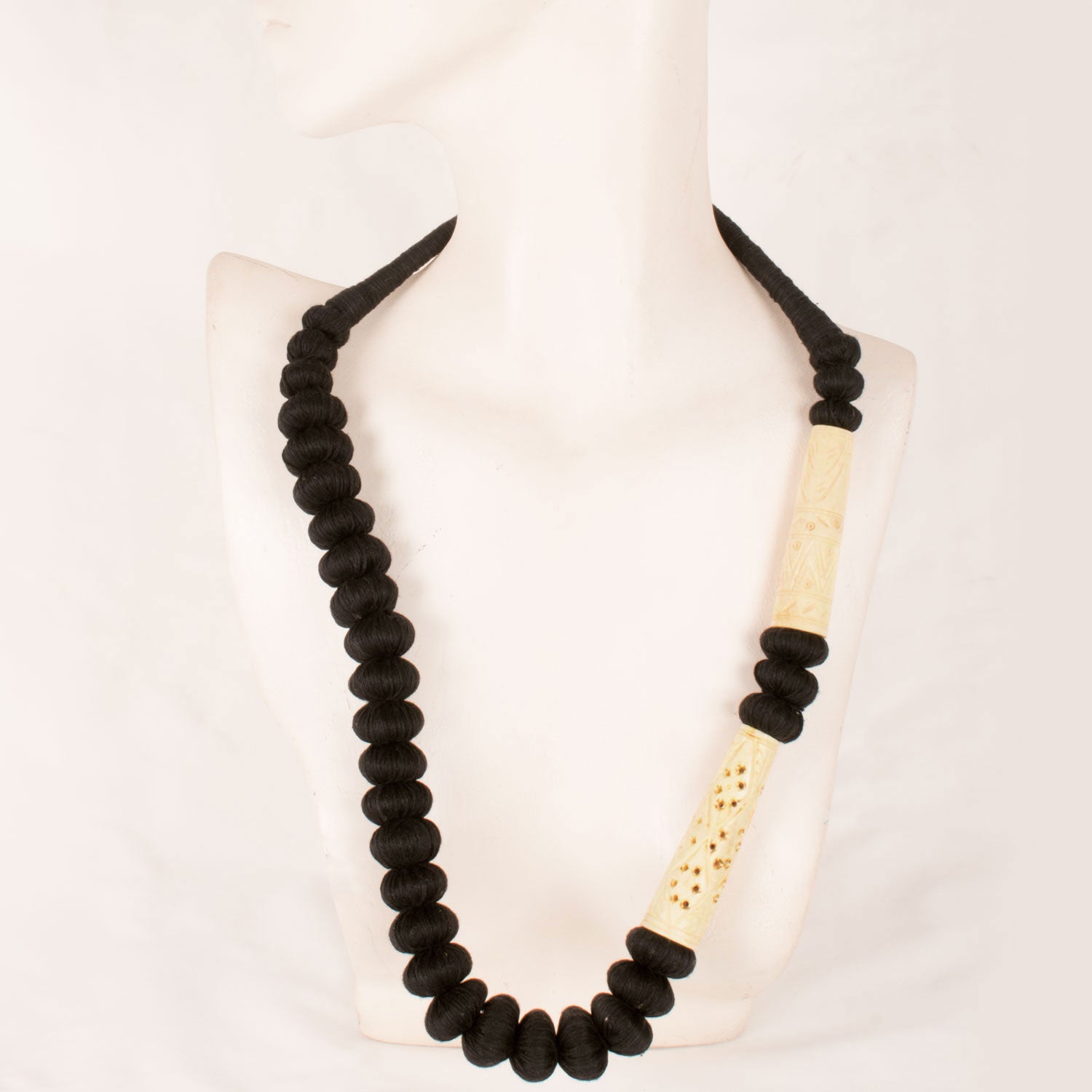 Handcrafted Silk Thread Fashion Necklace WIth Abd Carved Beads 10054937