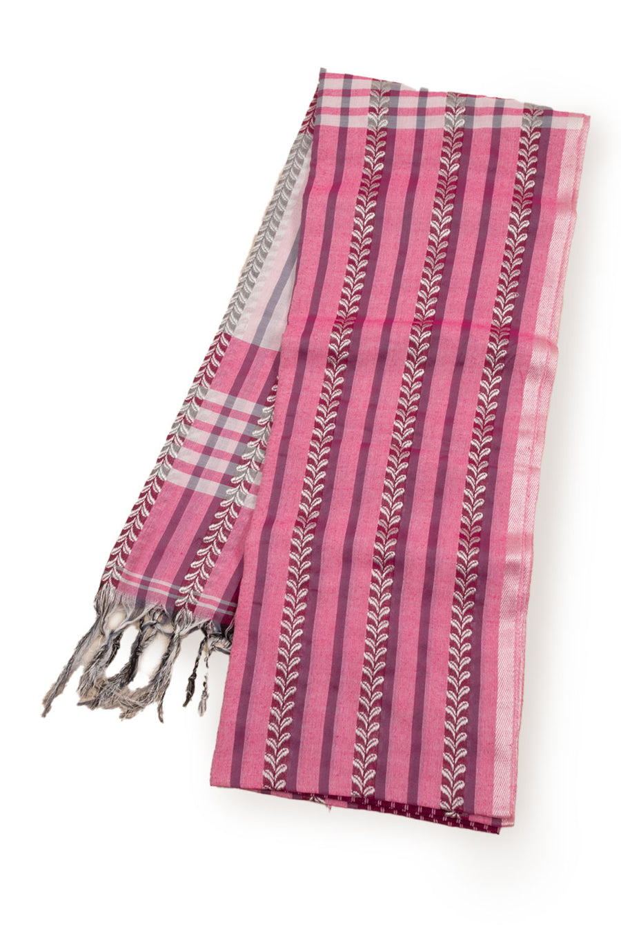 Fall in love with this charming pink Handloom Gadwal Kuttu Cotton saree, where intricate paisley motifs tell stories of traditional artistry and timeless beauty. Each handwoven detail celebrates the skill of master craftspeople...