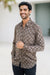 Elevate your casual wardrobe with this Grey Vanaspathi Printed Modal Silk Men's Shirt. It features stylish wooden buttons and convenient pockets for a functional yet fashionable look. Perfectly paired with jeans, khaki pants, this shirt offers versatile comfort and effortless style for any occasion.