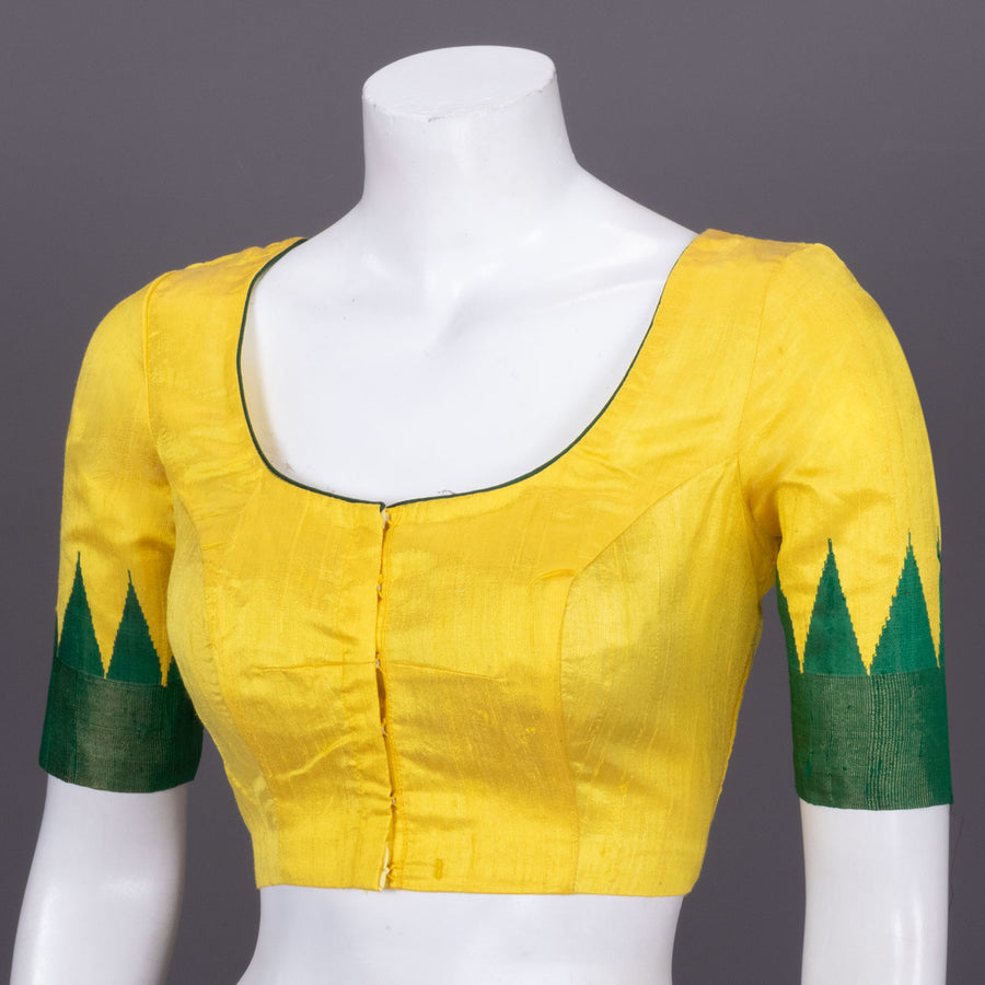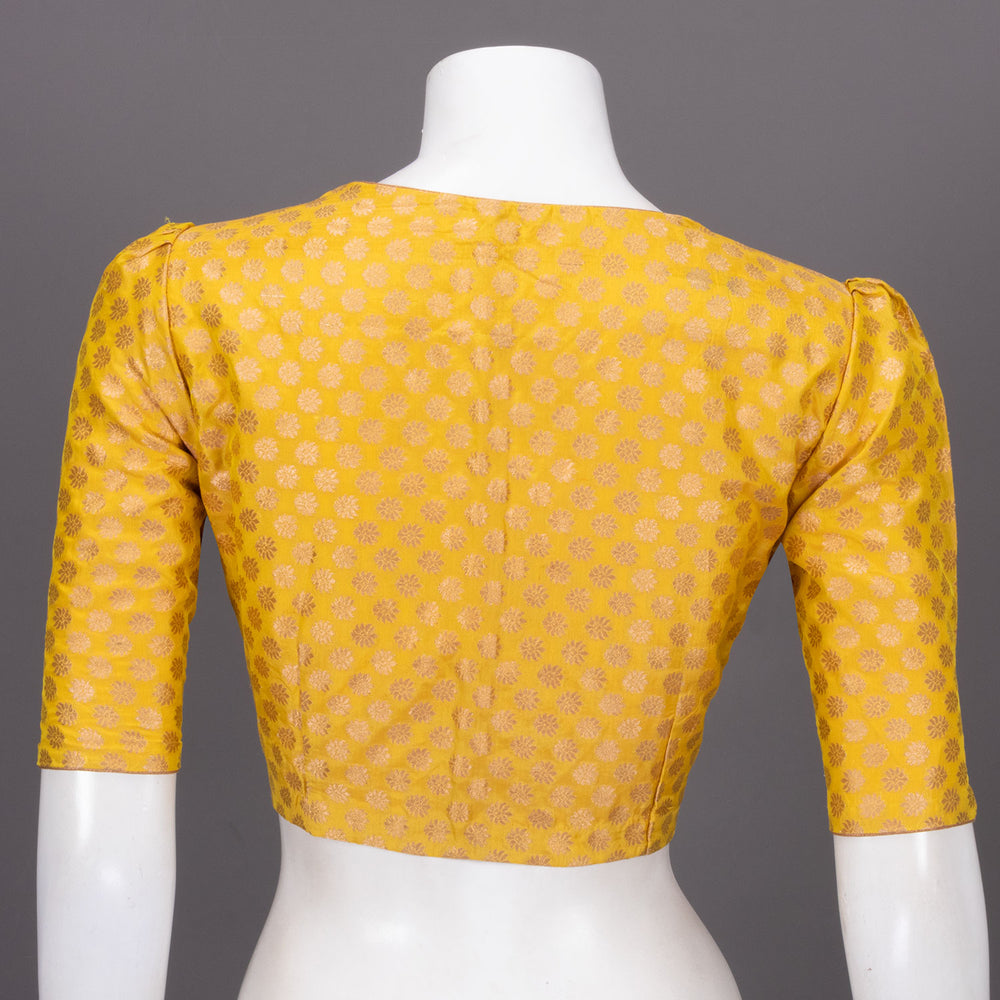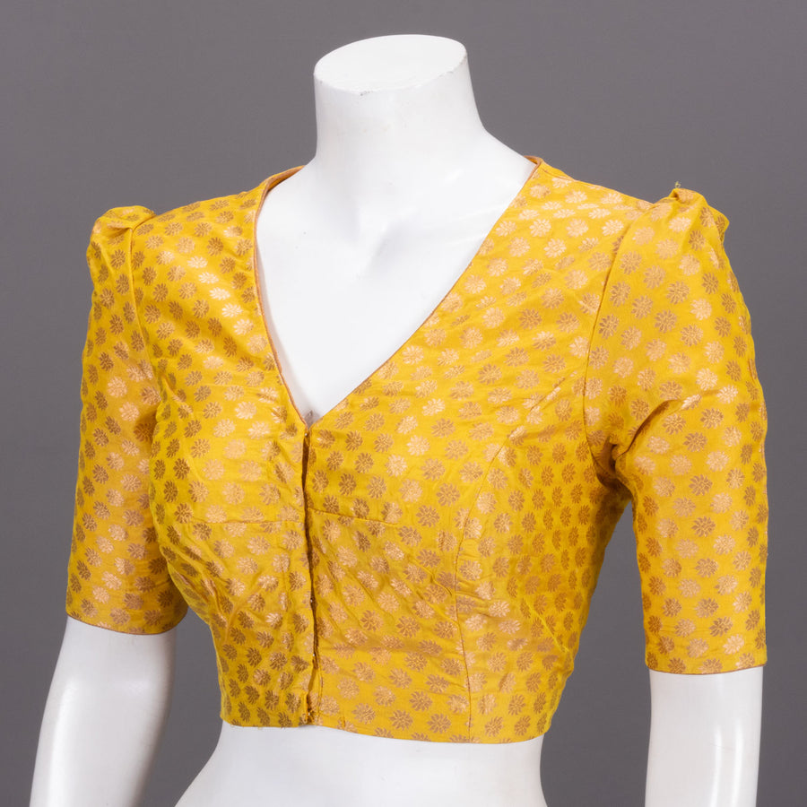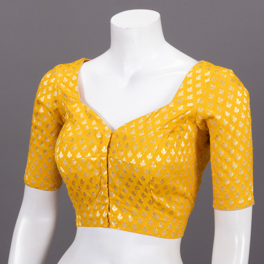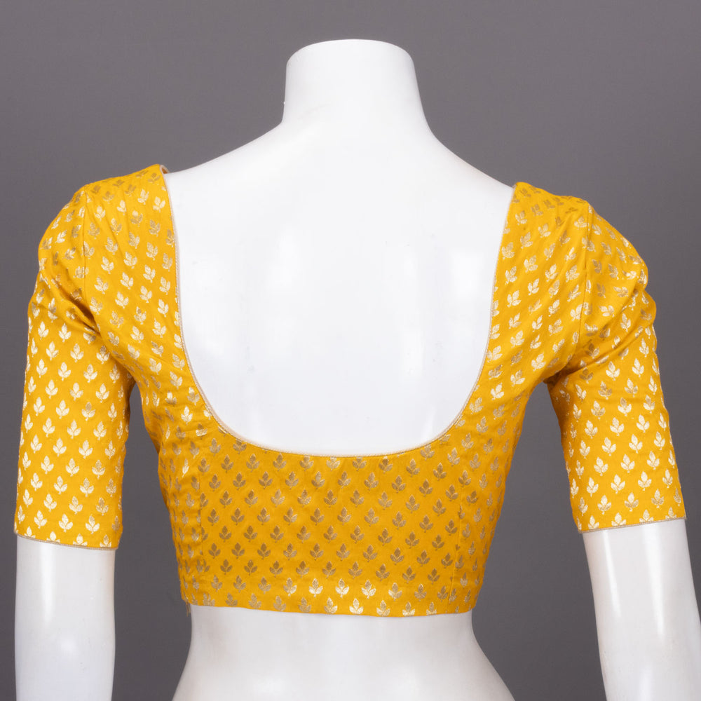 Radiate sunshine in this stunning Yellow Banarasi Silk Blouse, where traditional craftsmanship meets vibrant elegance. Adorned with delicate floral motifs, this piece celebrates the timeless artistry of Banarasi weaving. The lu...