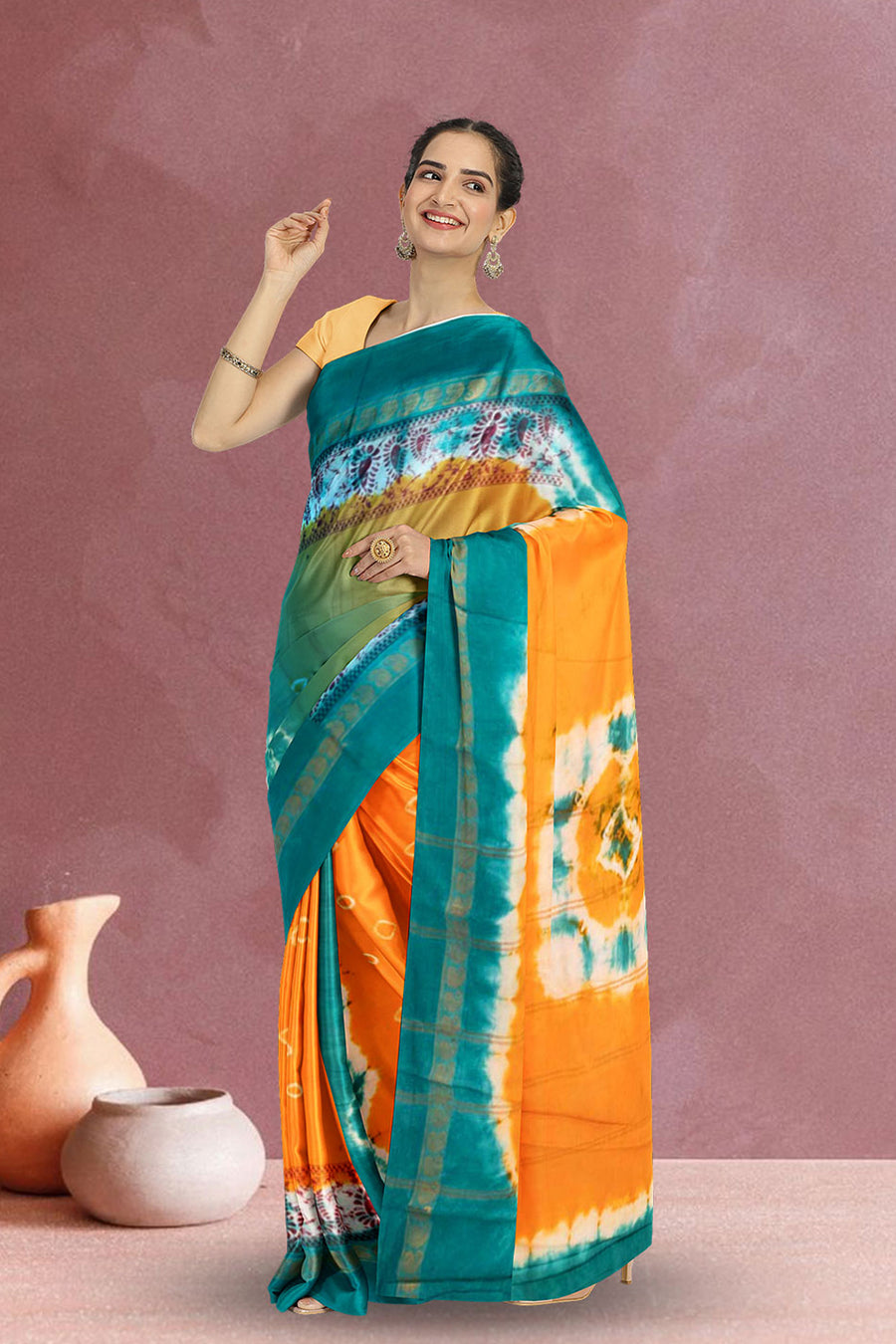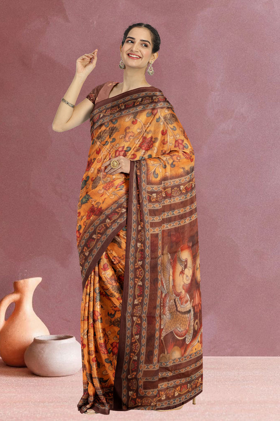 Radiate sunshine in this gorgeous yellow Mysore crepe silk saree that's pure elegance with a fun twist! Crafted from luxurious crepe silk, it drapes beautifully and feels incredibly soft against your skin. Perfect for weddings,...