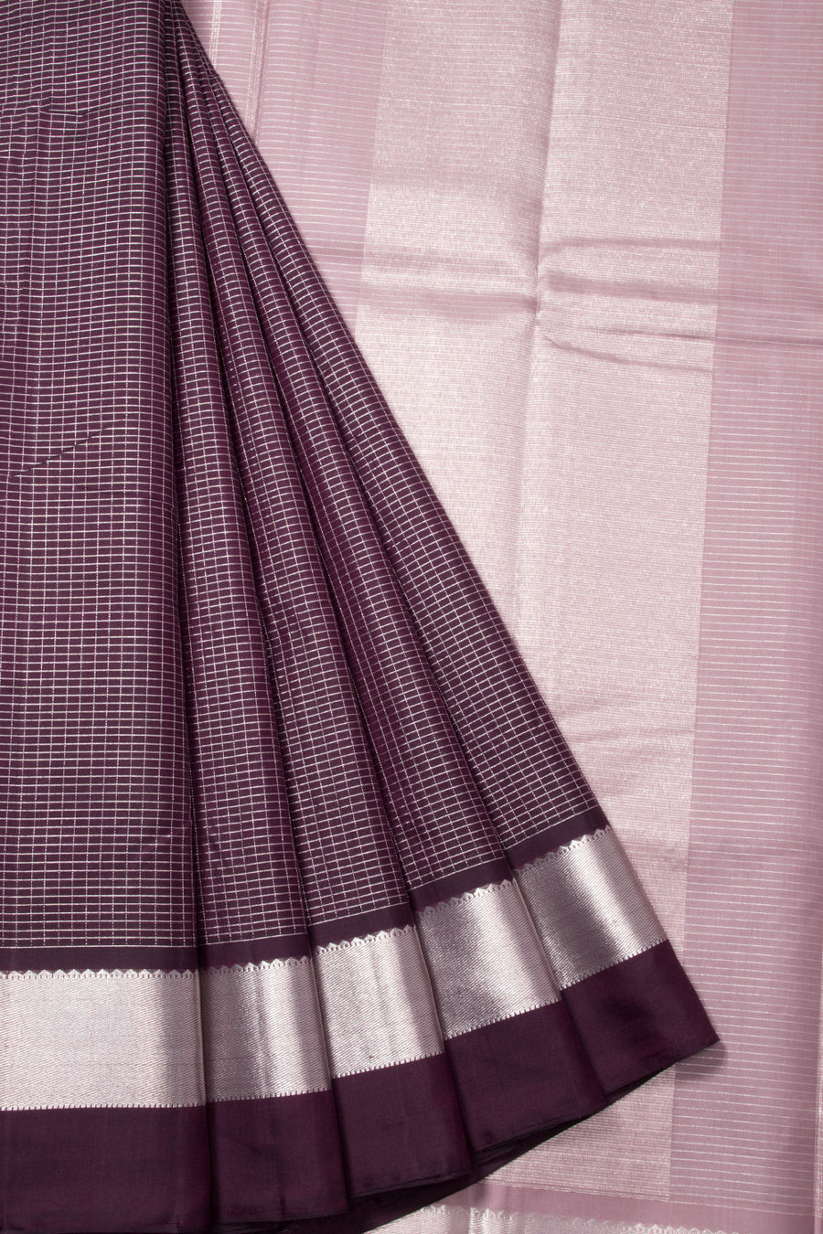 Elevate your elegance with the Mythical Purple Kanjivaram Silk Saree, featuring a timeless checks design. Crafted from rich silk, this saree offers luxurious texture and vibrant color that enhances your presence for any special...