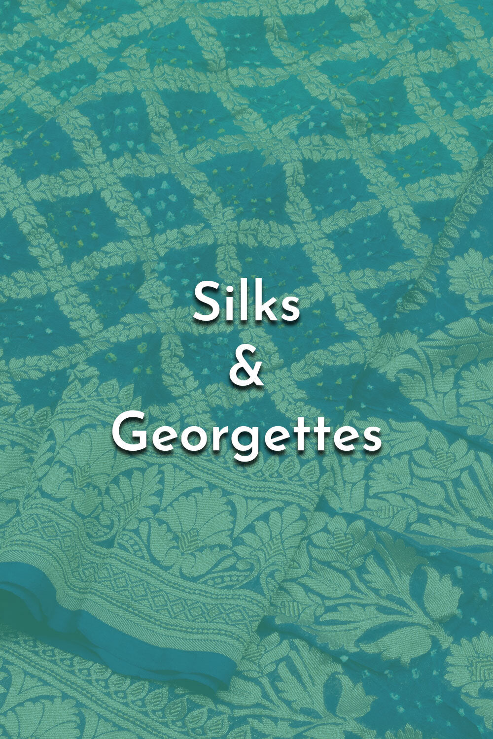 The tana (warp) is the longitudinal thread and the bana (weft) is the latitudinal threads, that are traditionally placed in a shuttle when weaving Banarasi sarees on jacquard pit looms. The warp and weft threads are woven together as the shuttle makes back-and-forth motions. Organza, Georgette, Chiffon, Chiniya silk, Katan silk, Kora silk and Tissue silk are the types of fabric used to traditionally make Banarasi sarees.