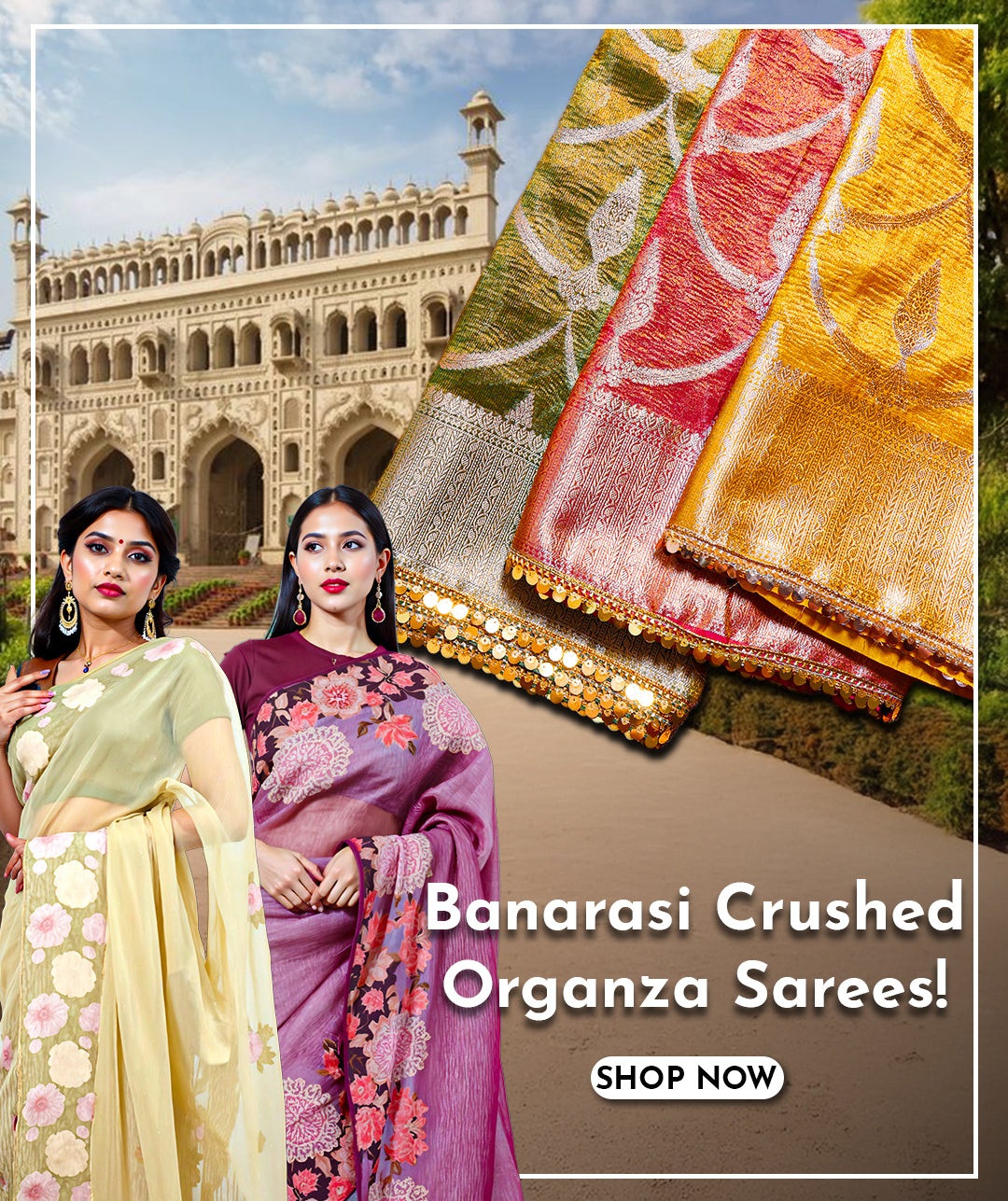Each Banarasi saree took up to a year to weave and was originally made specifically for royalty, was made from genuine gold and silver threads. These sarees have a lengthy history and available in a variety of yarns, weaves, patterns, and motifs. For its distinctive embossed appearance, which is often created using golden zari but can also occasionally use silk threads.