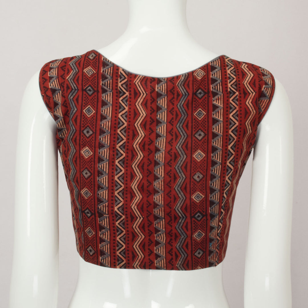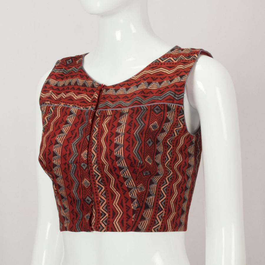 Maroon Ajrakh Printed Sleeveless Cotton Blouse 10066533