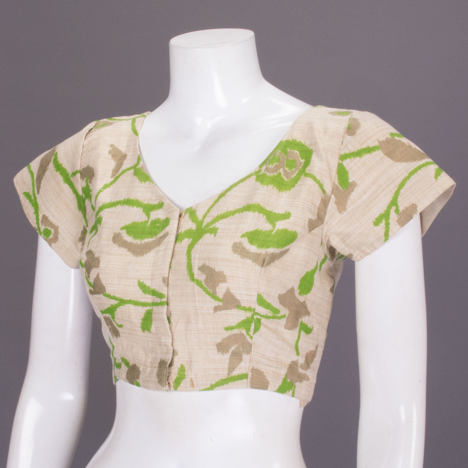 This luxurious beige blouse is crafted from premium Tussar silk for a comfortable fit and timeless style. Handcrafted details create a unique and beautiful look, perfect for any special occasion.