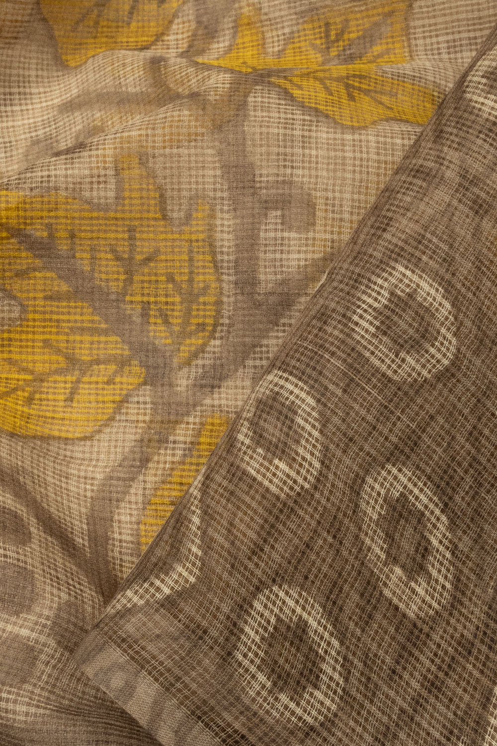 Look elegant in this beige Kota cotton saree with hand block printed vanaspathi pattern. Its light fabric and comfortable feel provides a perfect fit and creates a beautiful look. Enjoy special occasions with this stylish saree.