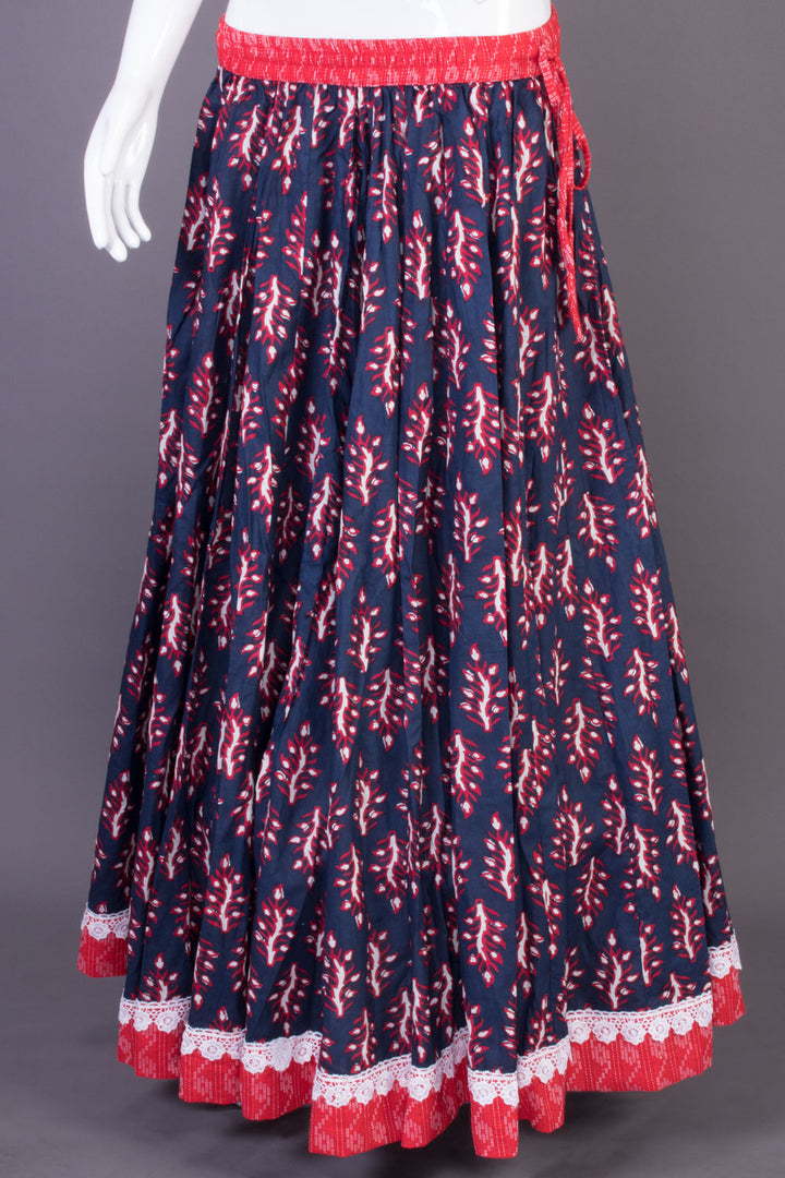 Berry Blue Hand Block Printed Cotton Skirt 10065533(Size-36 to 40)