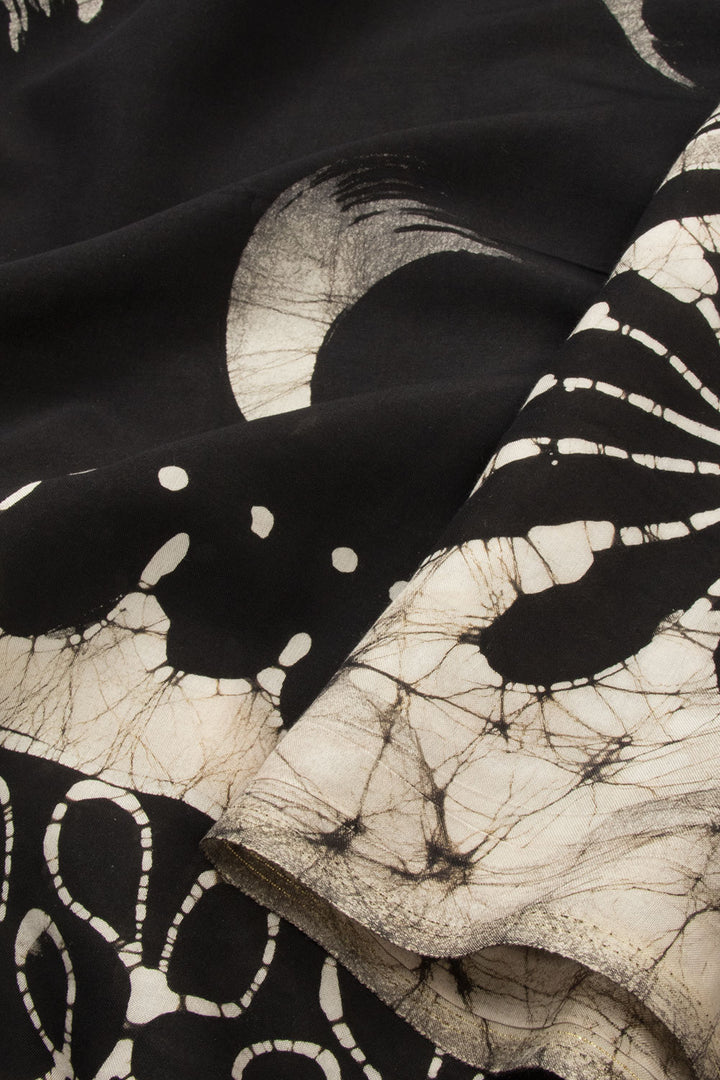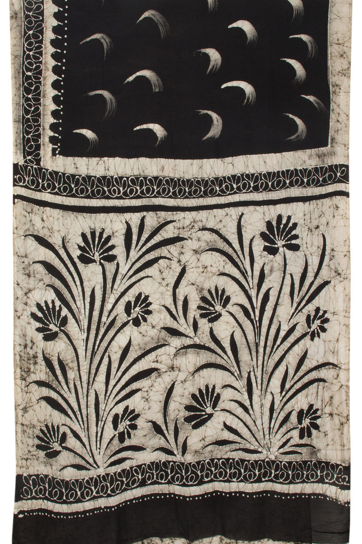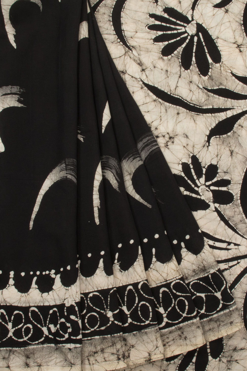 Look stunning in this beautiful black batik printed cotton saree. Featuring timeless designs and quality fabric, this saree is sure to make a statement. Look no further for an eye-catching traditional look!
