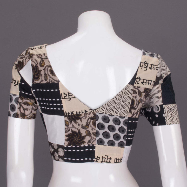 Black Patchwork Cotton Blouse This multicolour blouse is a stylish way to add a unique flair to any look. Made with soft and breathable cotton material, you'll stay comfortable and chic.