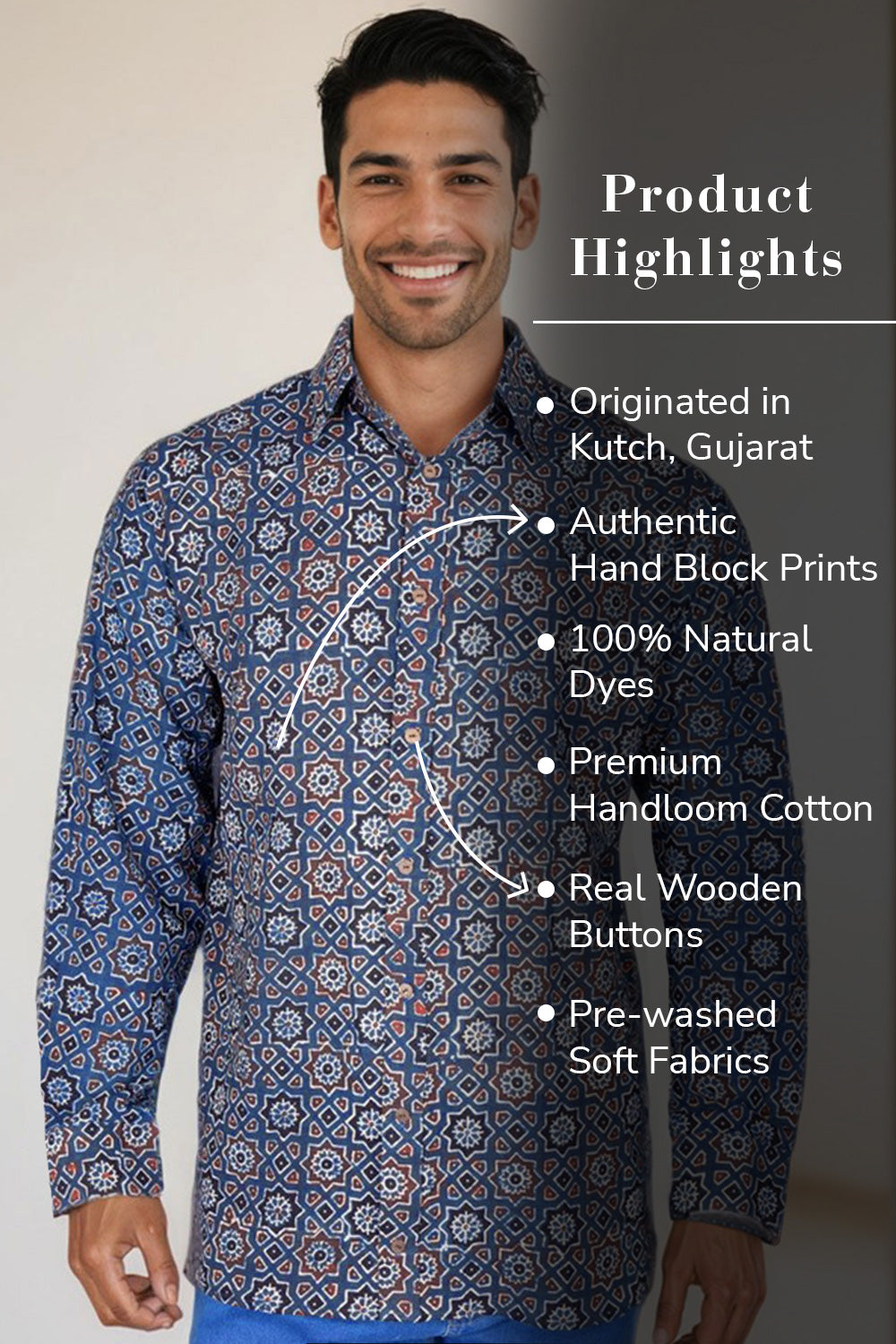 Blue Full Sleeve Ajrakh Printed Cotton Mens Shirt 10071157