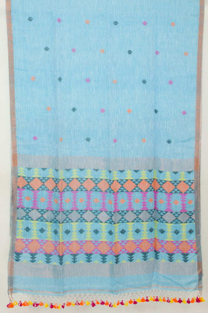 Blue Handloom Jamdani Linen Saree 10065399