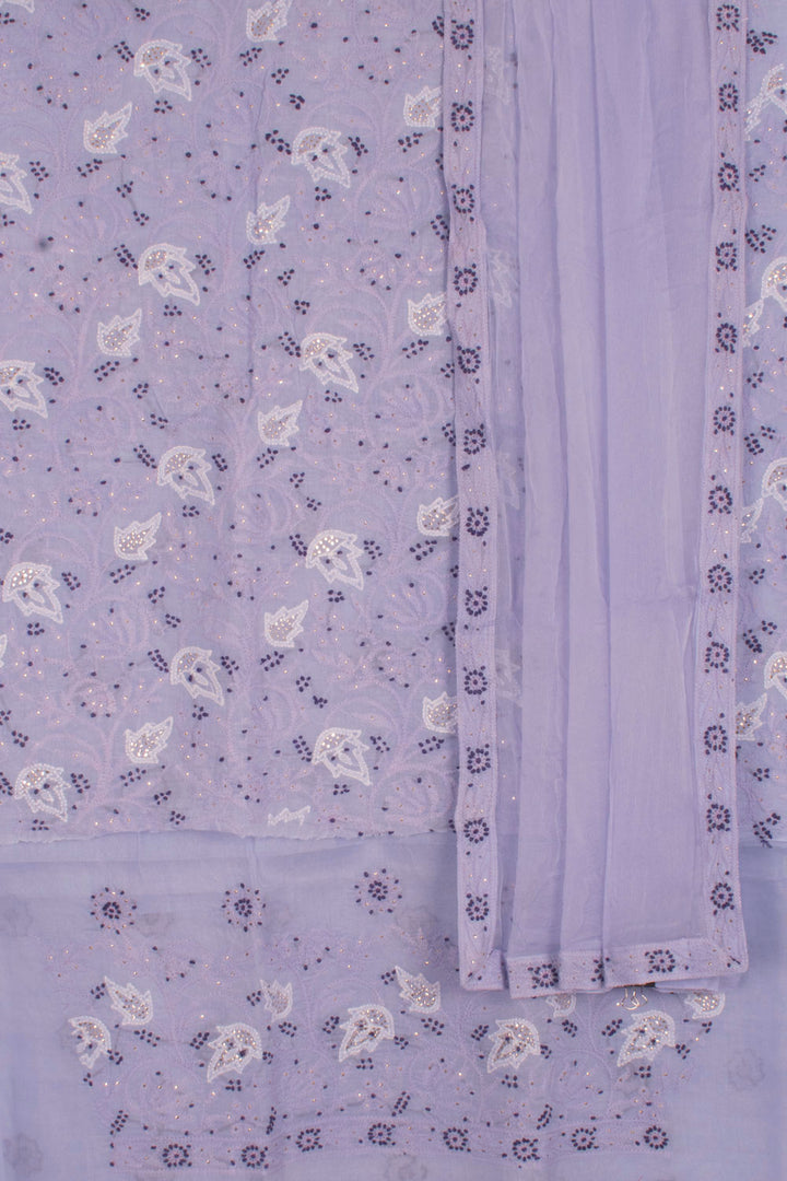 Hand Embroidered Chikankari Cotton 3-Piece Salwar Suit Material with Mukaish Work and Chiffon Dupatta 10057973