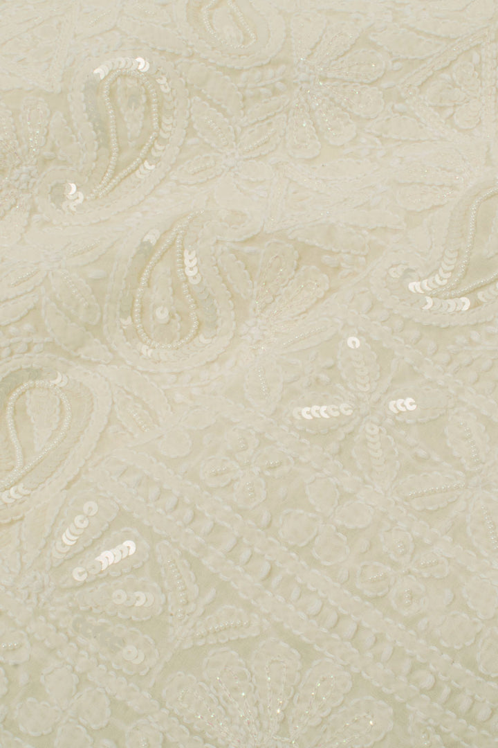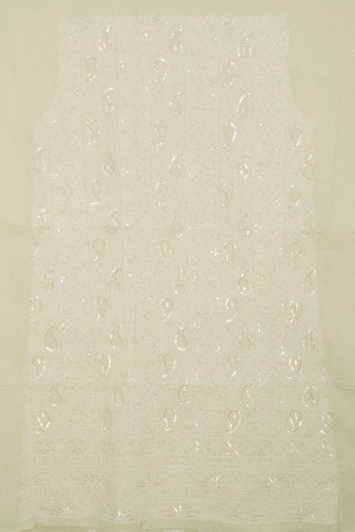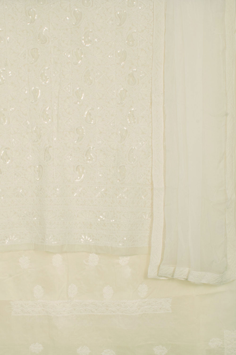 Hand Embroidered Chikankari Cotton 3-Piece Salwar Suit Material with Sequin, Bead Work and Chiffon Dupatta 10057984
