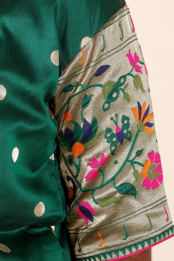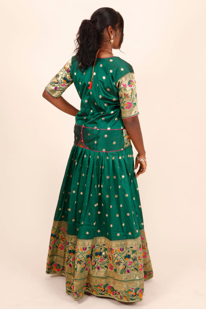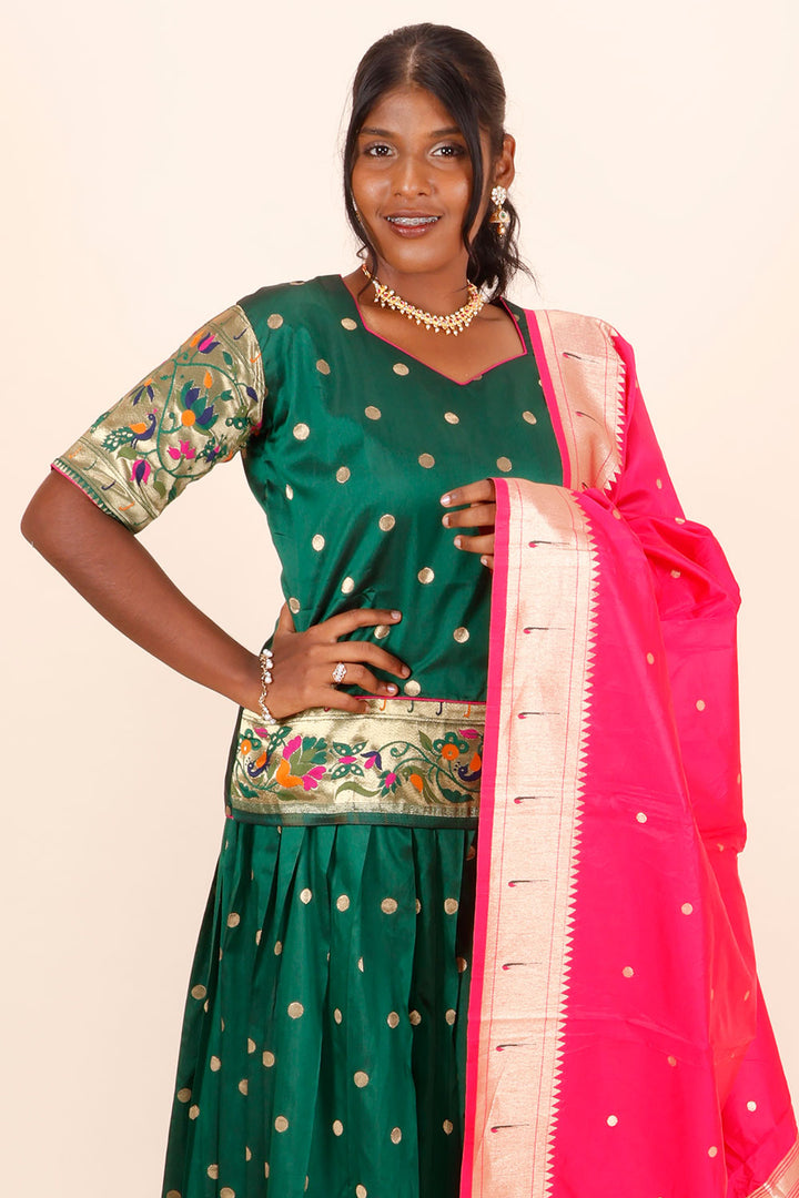 Dark Green Handcrafted Paithani Lehenga - 10065963
