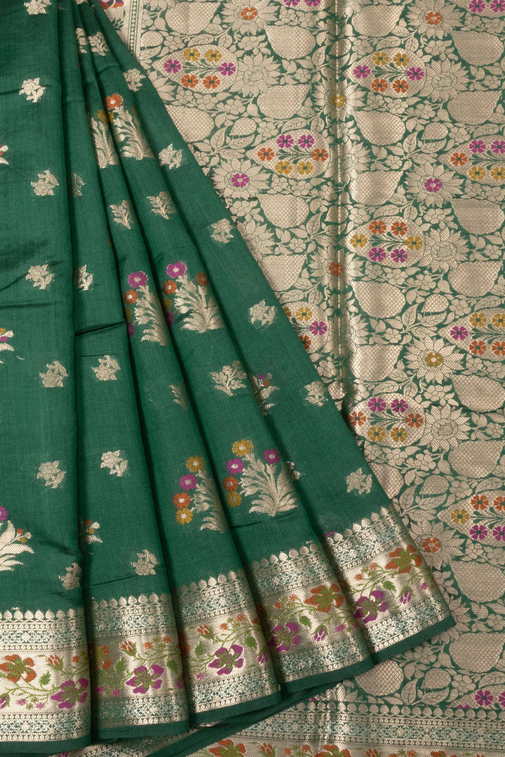 Dark Green Handloom Banarasi Chiniya Silk Saree 10065484