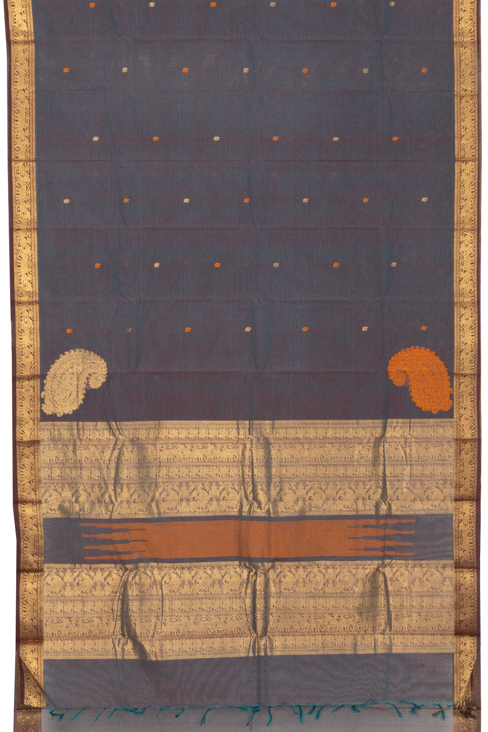Dual Tone Blue Handwoven Kanchi Cotton Saree 10066827
