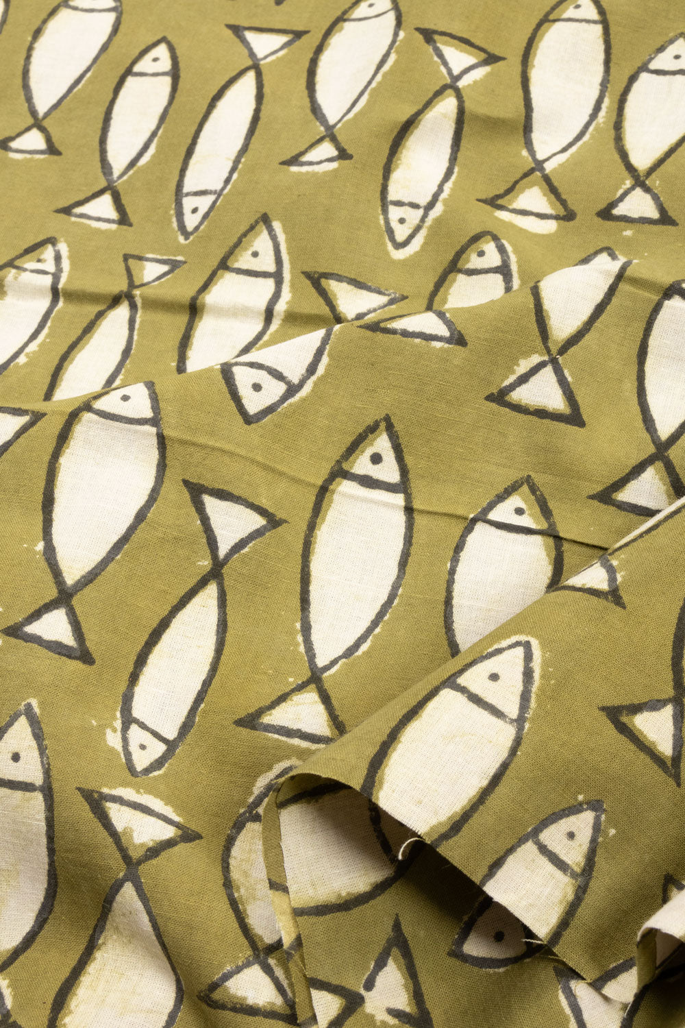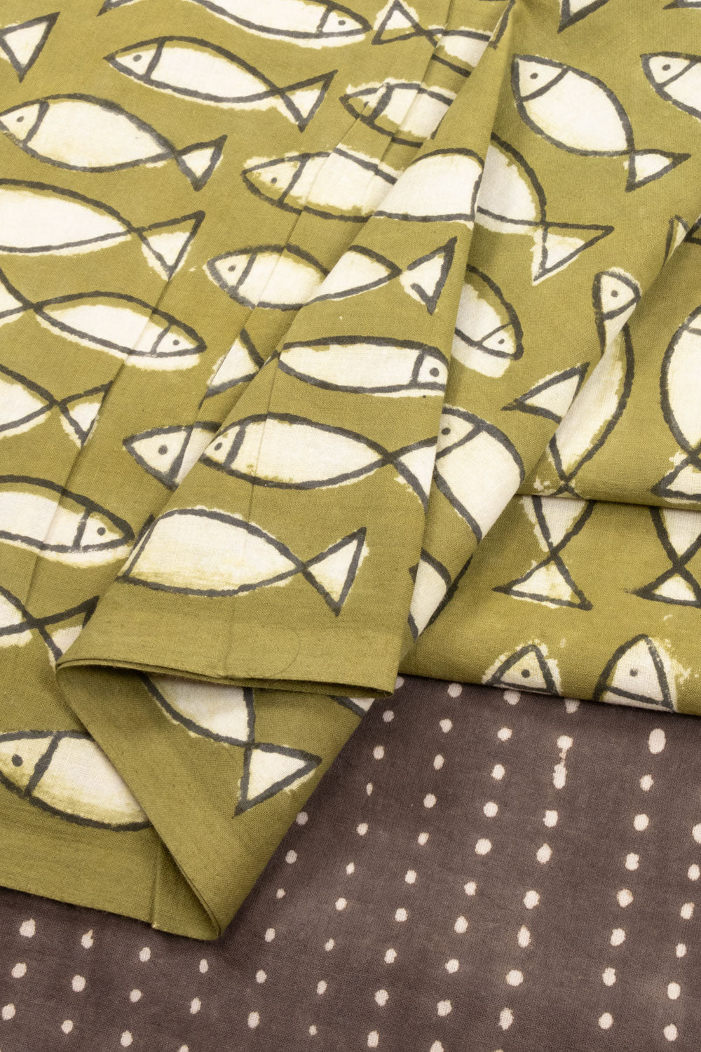 Green Bagru Printed Cotton Salwar Suit Material 10071598