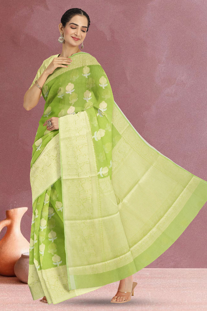 Green Banarasi Organza Saree 10067272