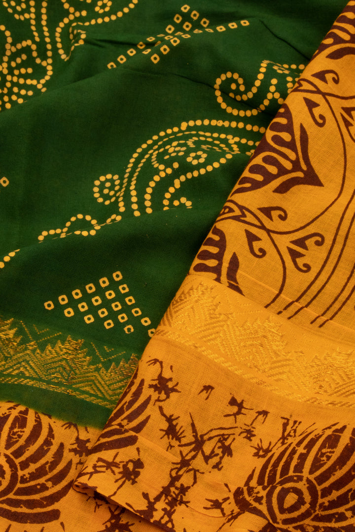 Green Handcrafted Sungudi Cotton Saree 10074927