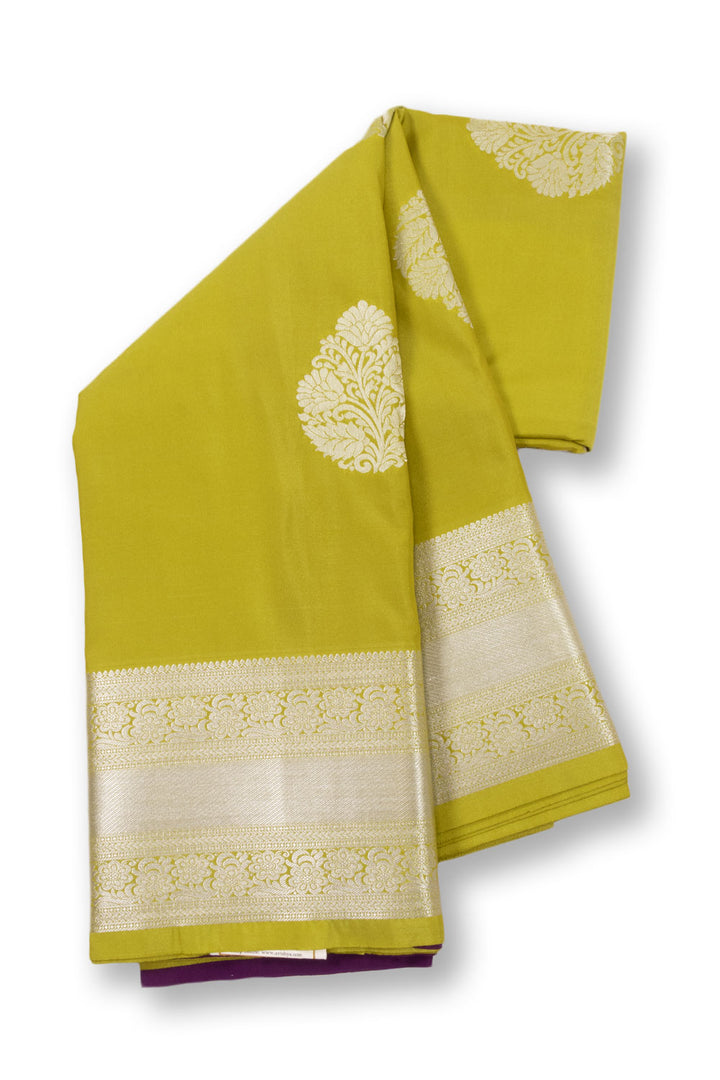 Elevate your style with our Green Kanjivaram Vegan Silk Saree! Made with the Vegan silk, this saree showcases a beautiful Green color that will make you stand out on any occasion. The intricate work adds a touch of elegance, while the soft fabric promises comfort all day long. Make a statement and exude confidence with this timeless piece!