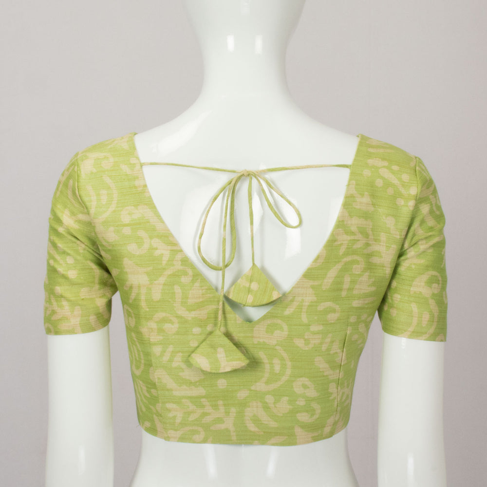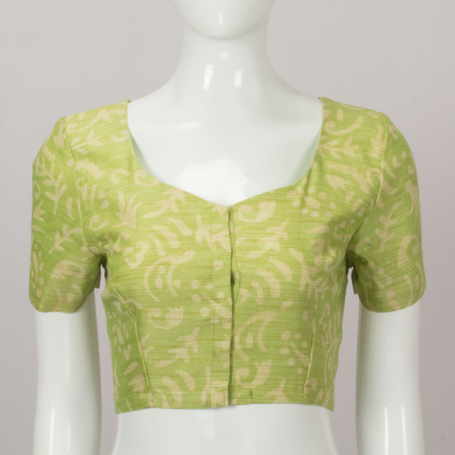 Dress up for special occasions in this elegant Green Tussar Silk Blouse. Crafted with premium silk, it provides a sophisticated look and feels of luxurious comfort. Its subtle design and rich texture make it the perfect choice for any occasion.