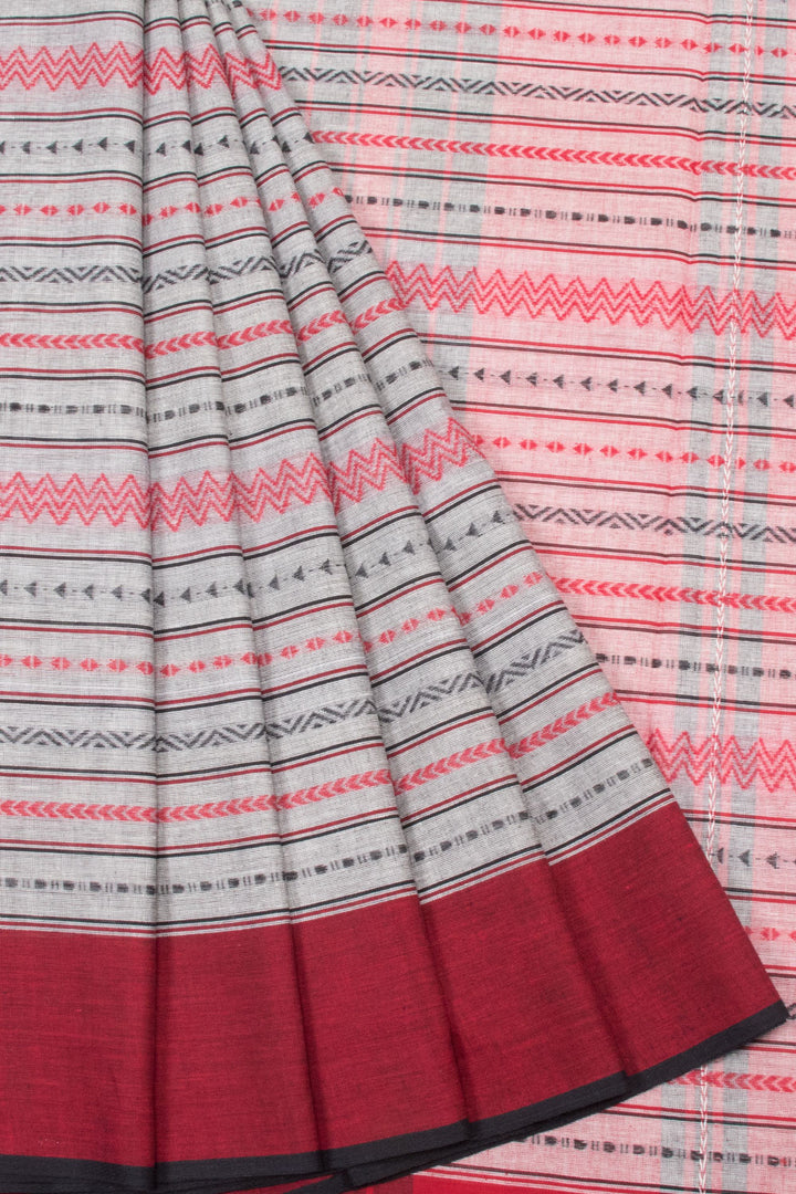 Grey With Red Handloom Dhaniakhali Cotton Saree 10063551