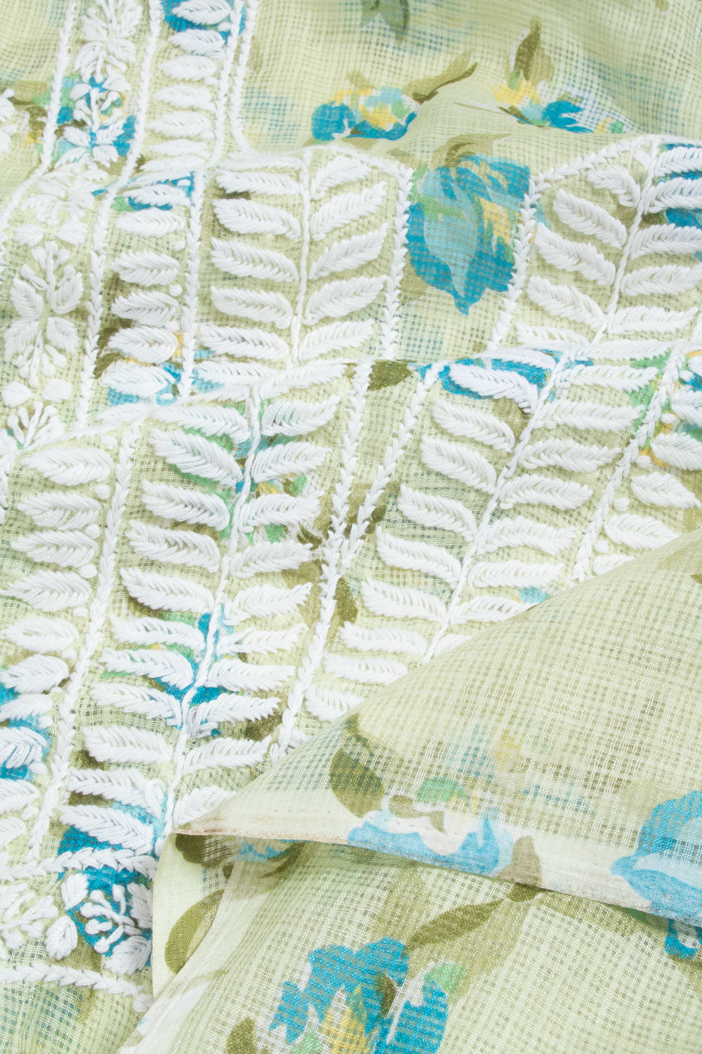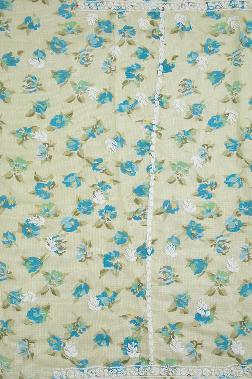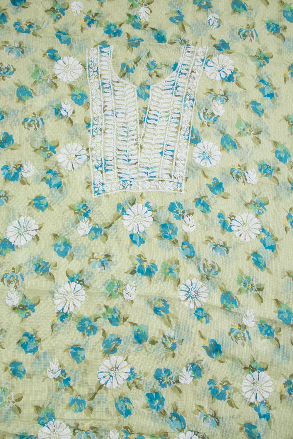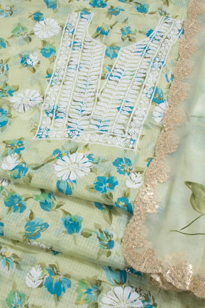 Hand Embroidered Chikankari Kota Cotton 2-Piece Salwar Suit Material with Organza Dupatta 10059370