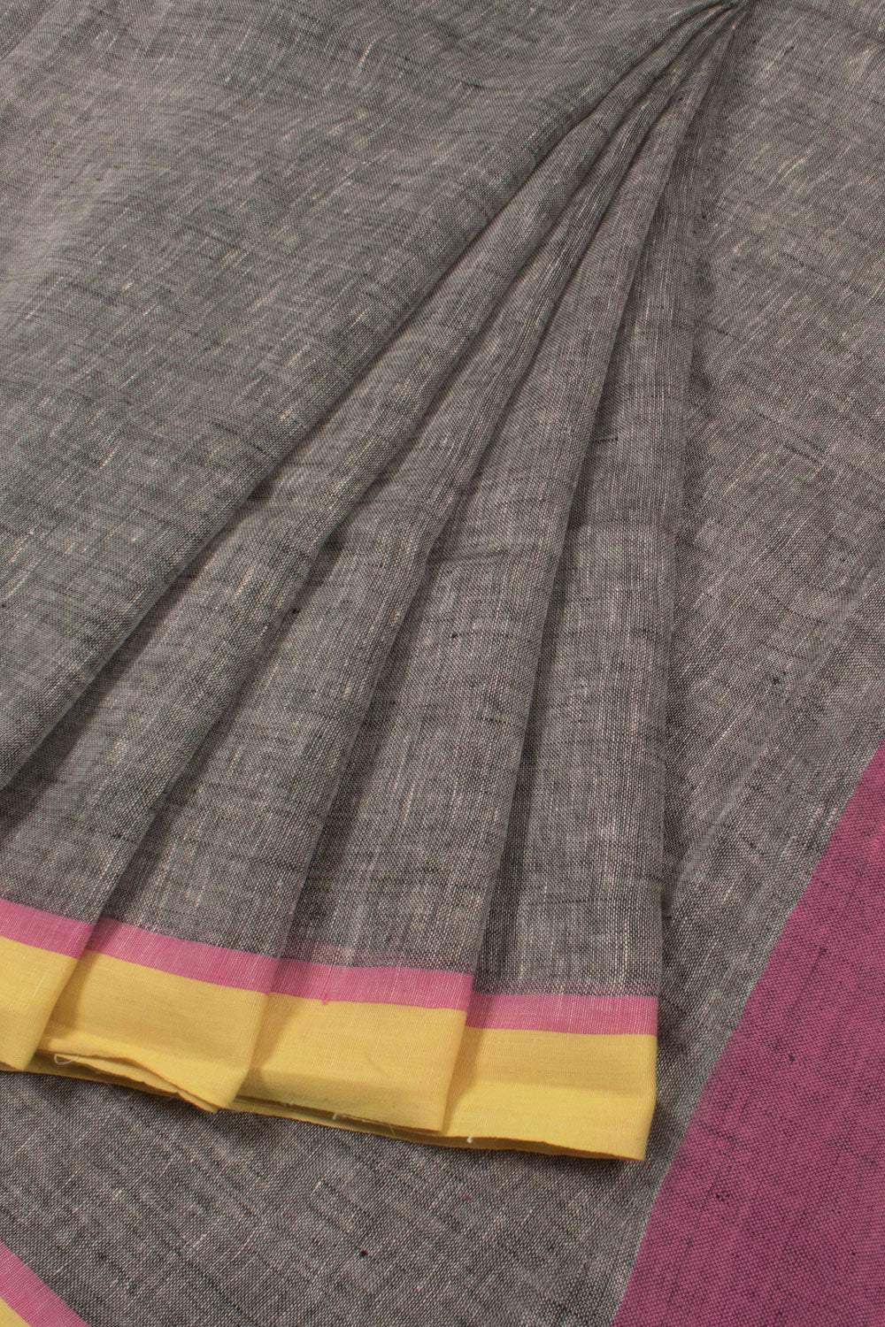Handloom Bhagalpur Linen Saree with Contrast Border 10057625