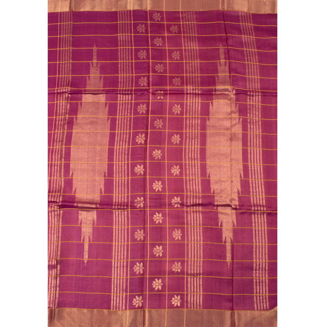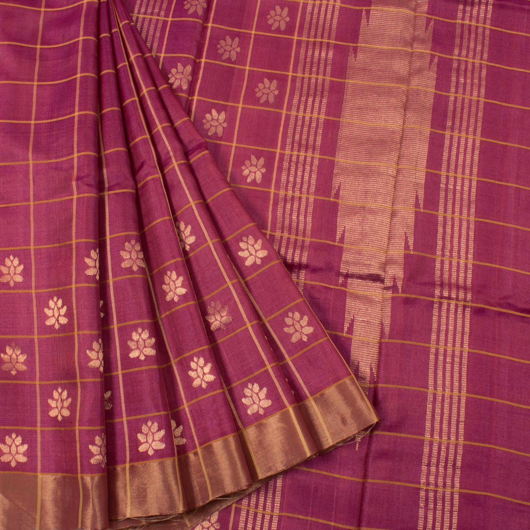 Handwoven Chhattisgarh Tussar Silk Saree with Checks Design and Floral Motifs Zari Border 10053617