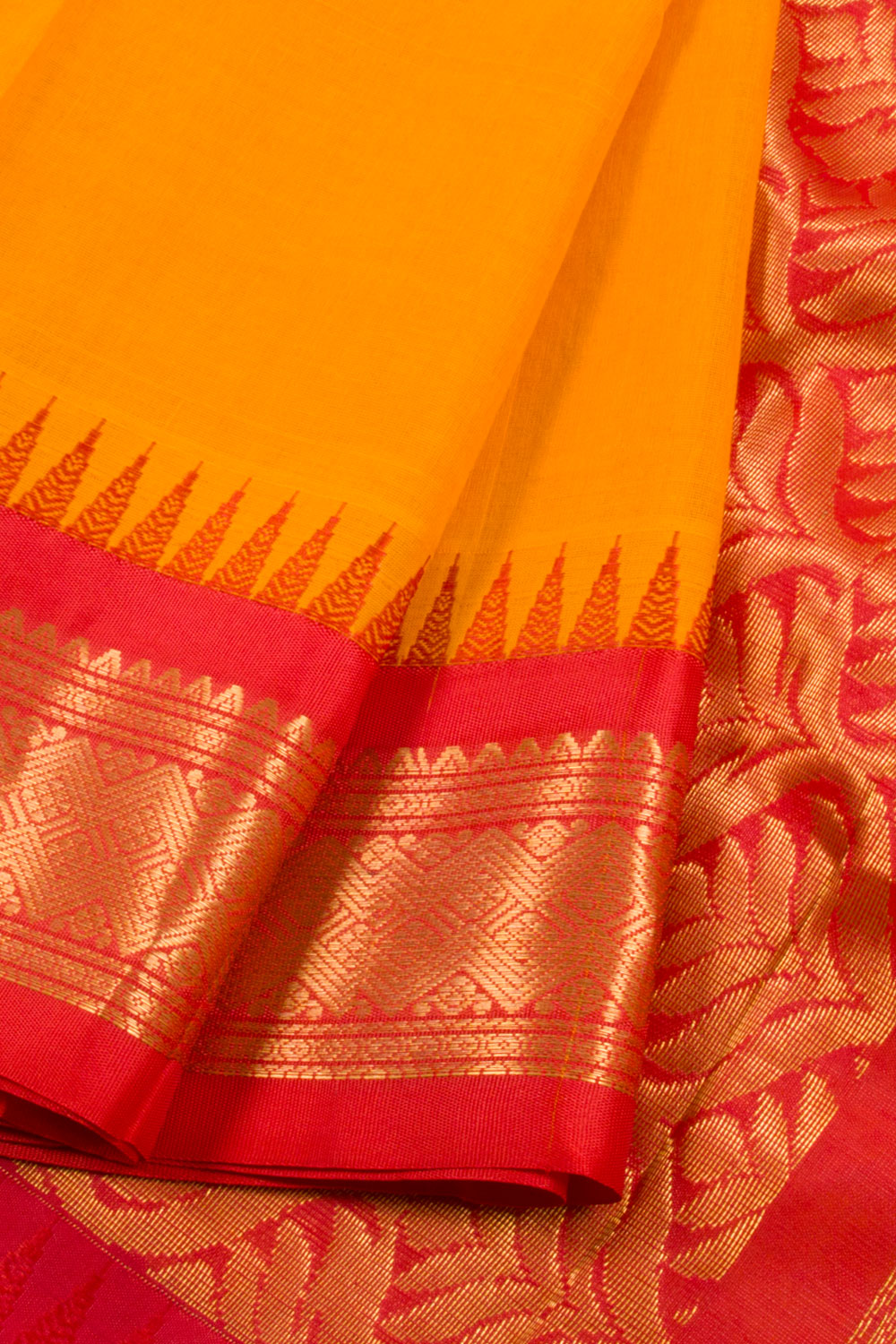 Orange Handloom Gadwal Kuttu Cotton Saree 10061423