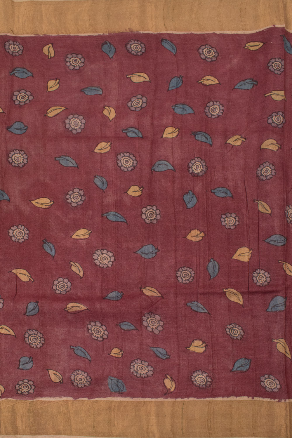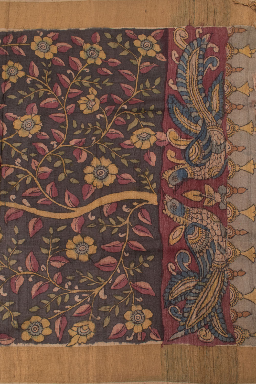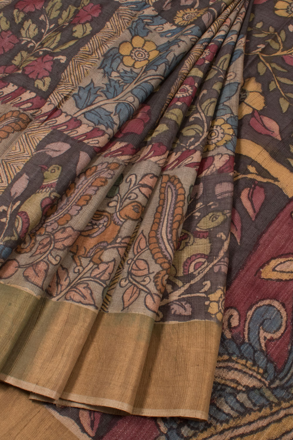 Elephant Grey Hand Painted Pen Kalamkari Tussar Silk Saree 10059457
