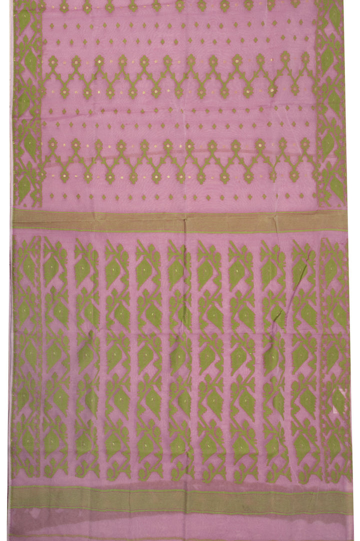 Mauve Handloom Jamdani Style Cotton Saree with Blouse 10074218