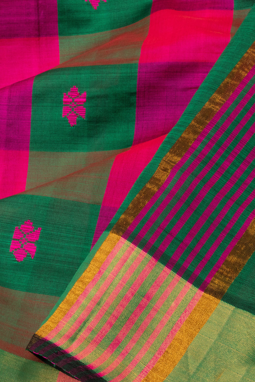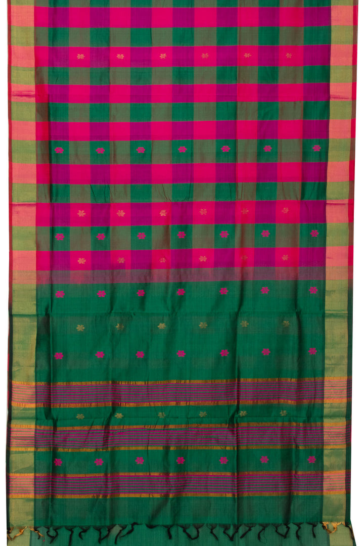 Multicolour Handloom Kanchi Silk Cotton Saree A perfect blend of elegance and comfort, this saree is handcrafted using premium quality silk and cotton. It's lightweight and smooth texture will keep you comfortable all day long, making it an ideal choice for any occasion.