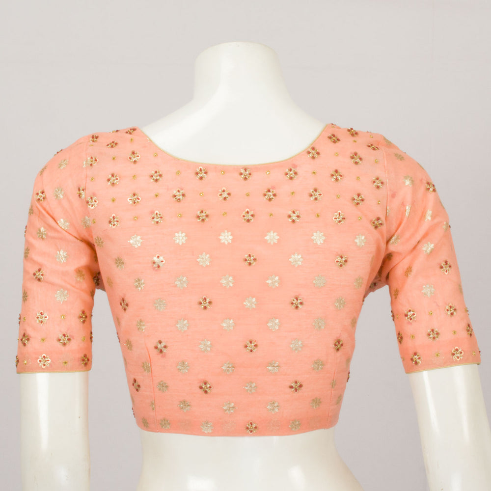 Look beautiful this season with this elegant peach hand-embroidered blouse crafted from silk and cotton blend. It will be your go-to staple for all special occasions.