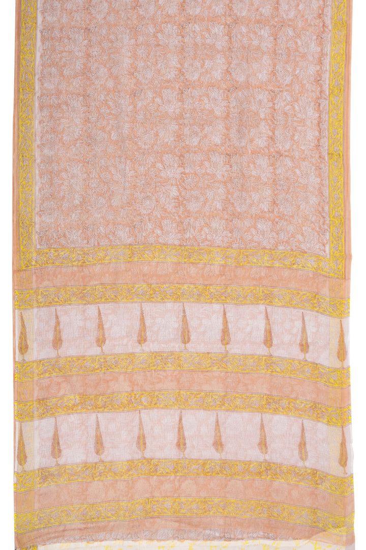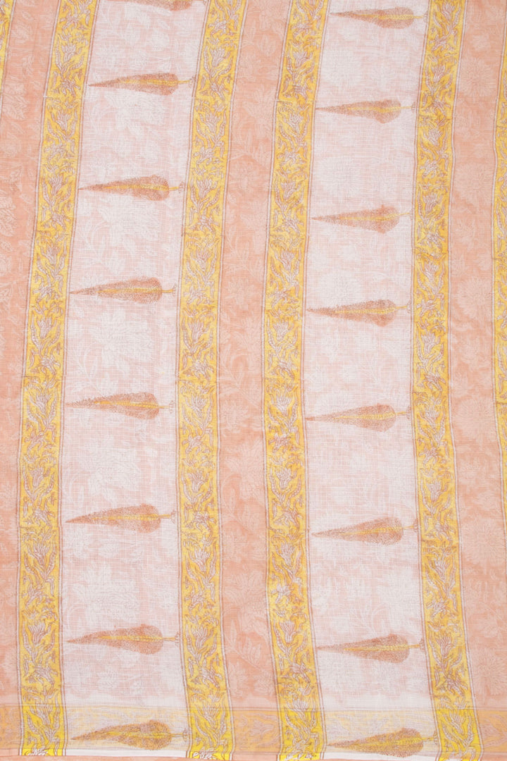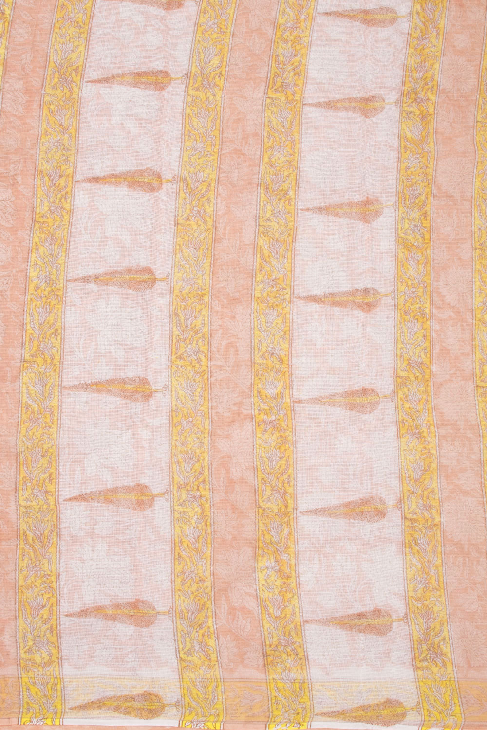Peach Hand Block Printed Kota Cotton Saree 10074172