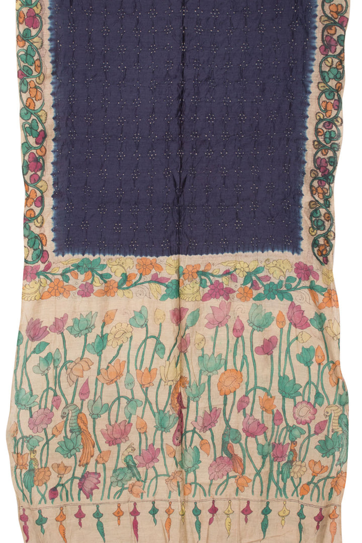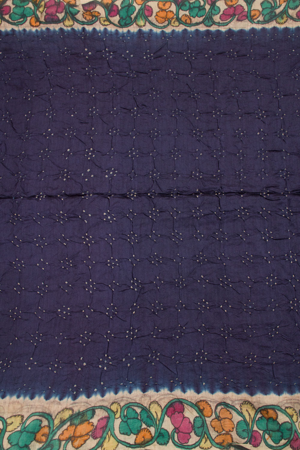Navy Blue Pen Kalamkari Bandhani Tussar Silk Saree 10060139