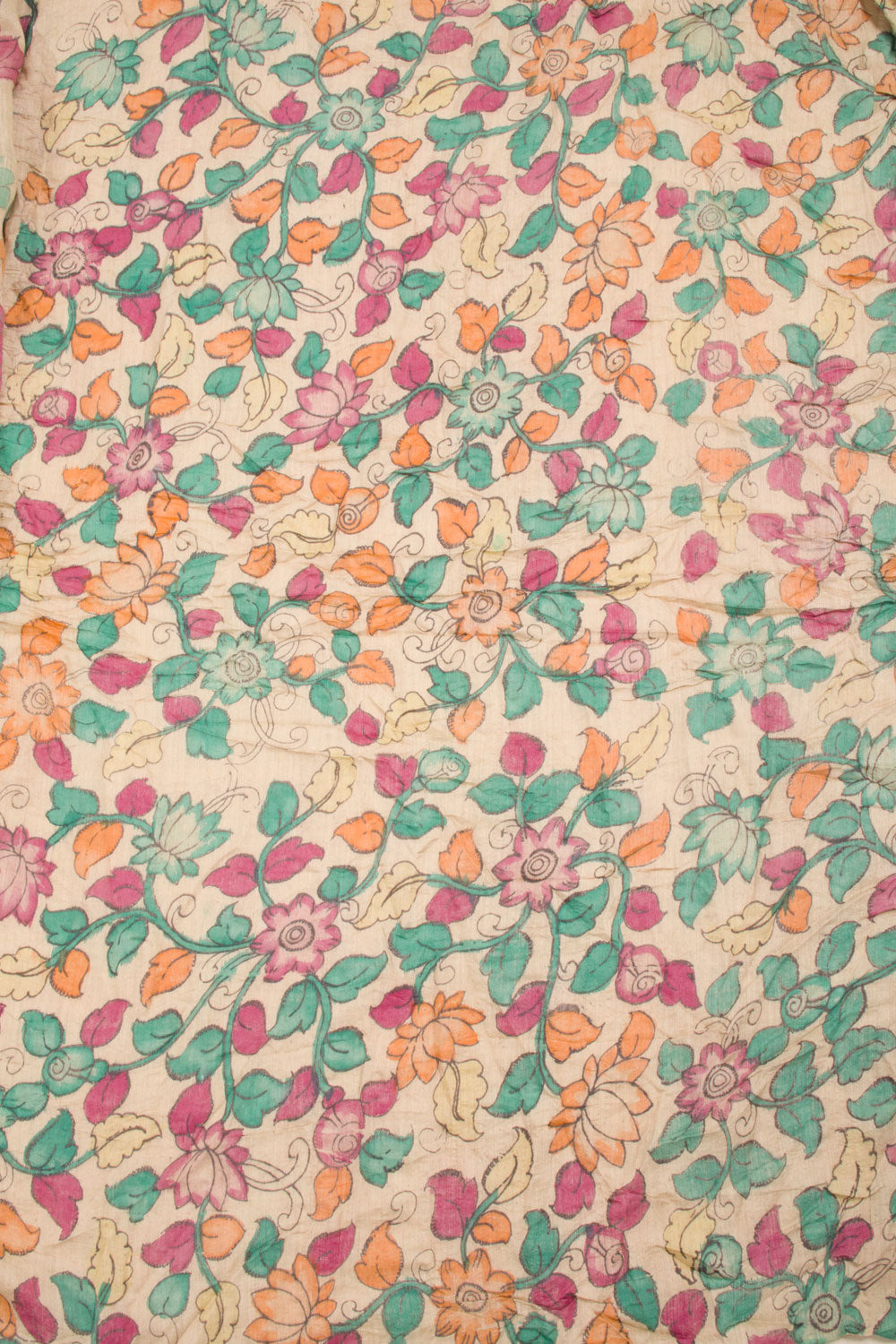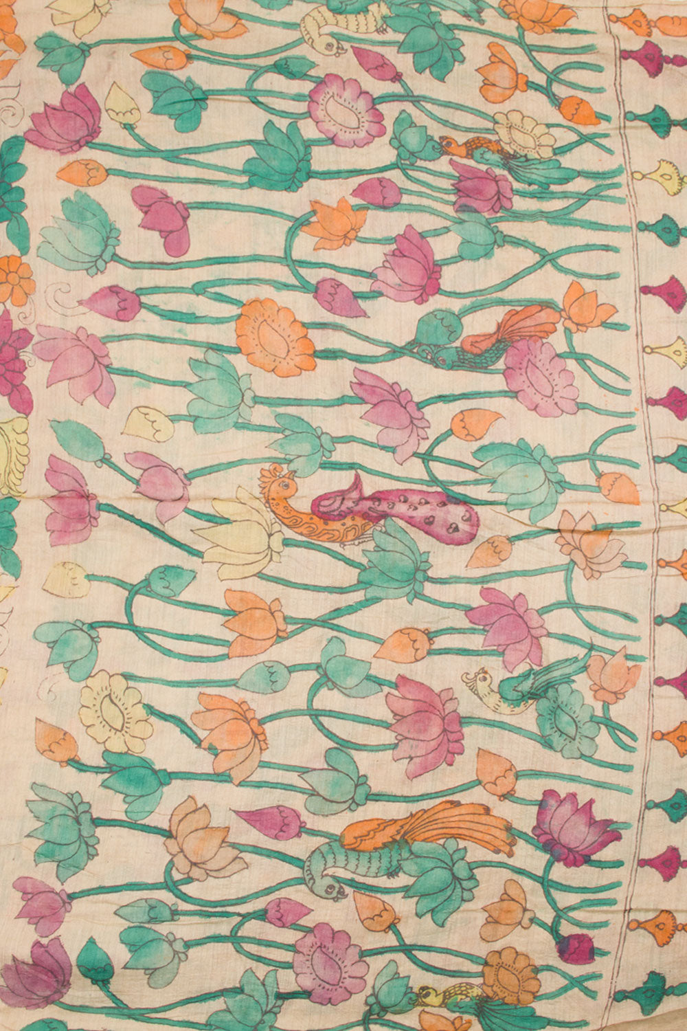 Pen Kalamkari Bandhani Tussar Silk Saree with Hand Painted Pen Kalamkari Border, Pallu and Blouse 10060139