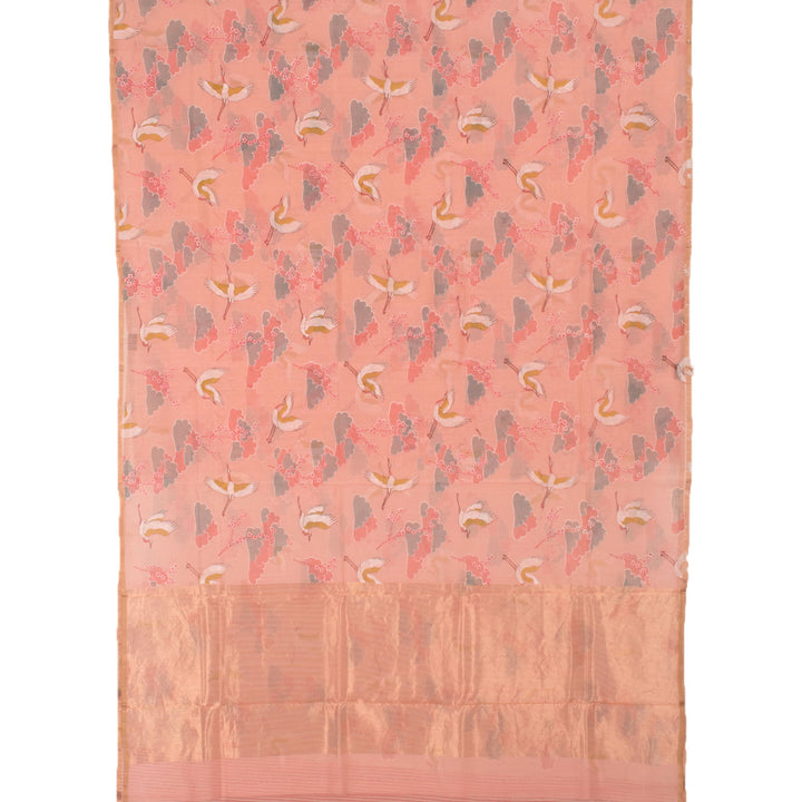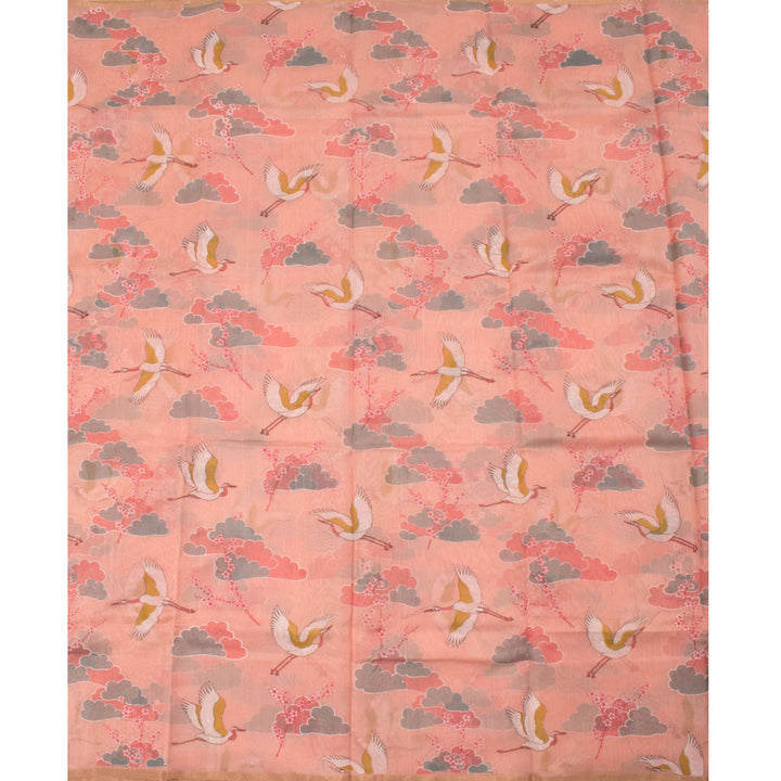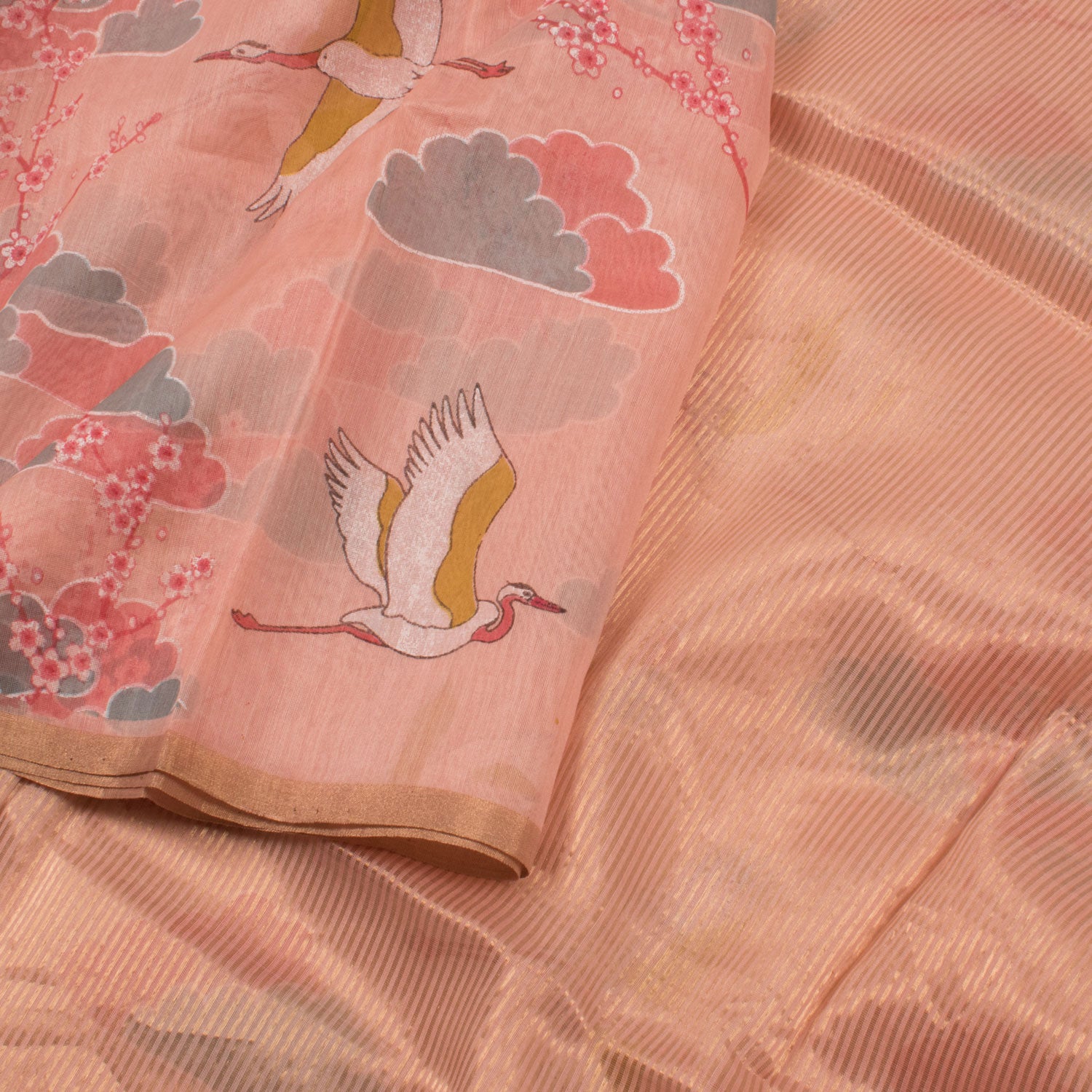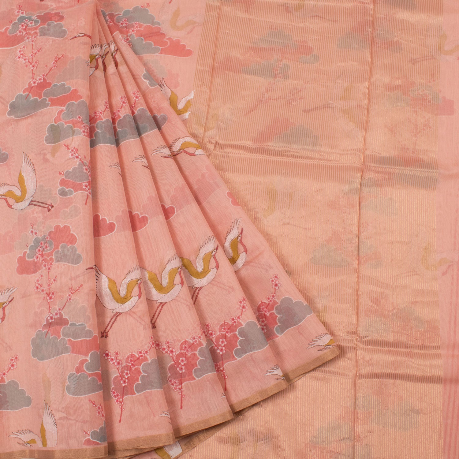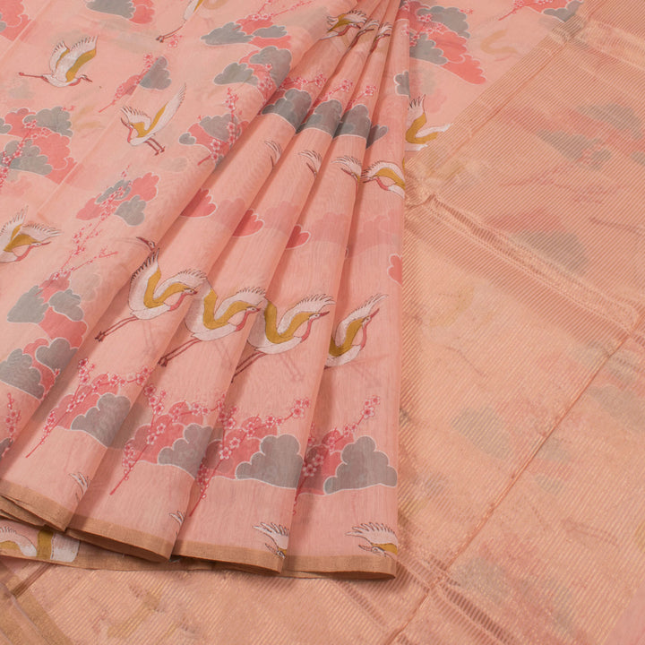 Printed Chanderi Silk Cotton Saree With Bird Motifs 10054815