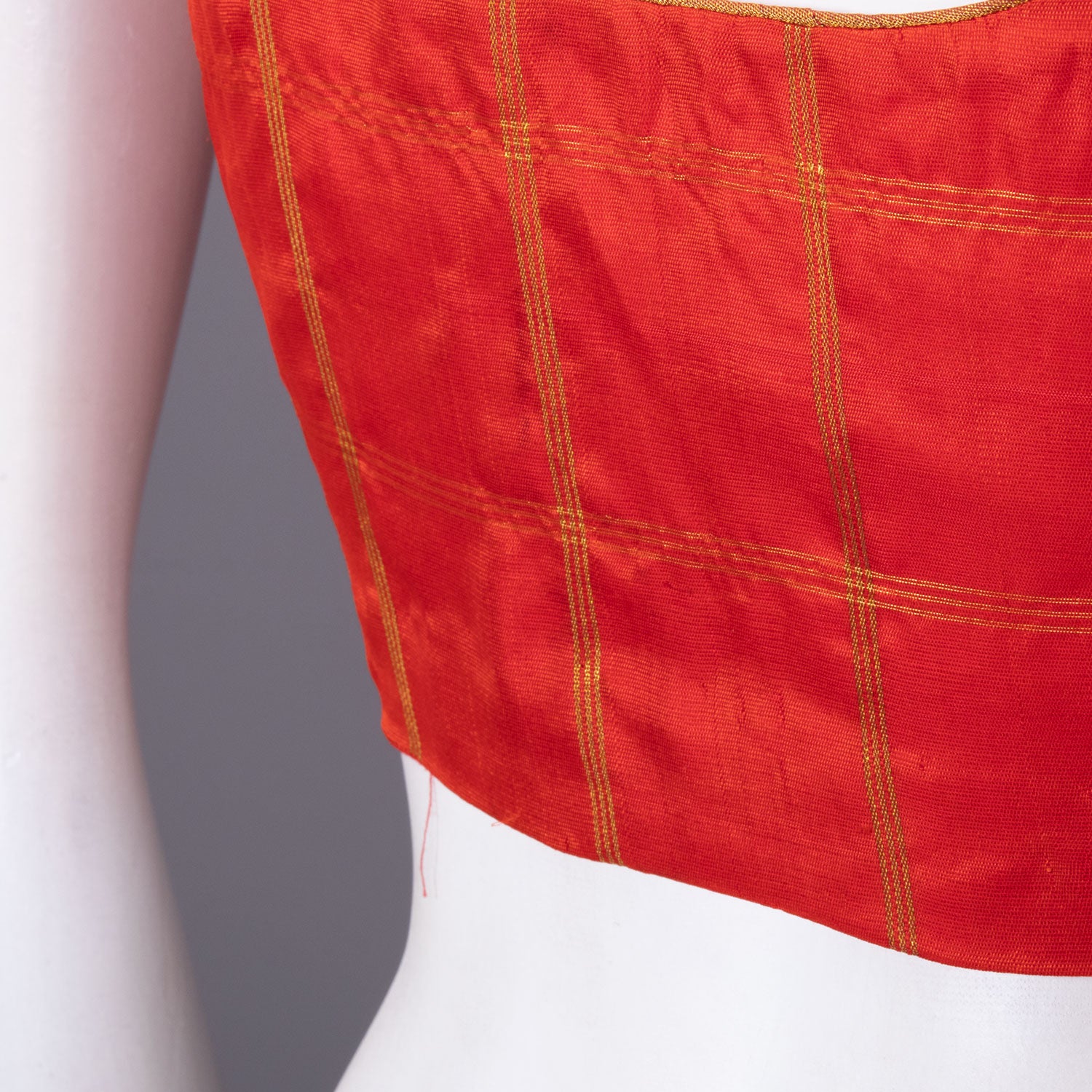 Experience elegance and luxury with our Red Gadwal Silk Blouse! Made with high-quality silk, this blouse is lightweight and comfortable for all-day wear. The vibrant red color adds a touch of glamour to any outfit. Perfect for special occasions or adding a pop of color to your wardrobe.