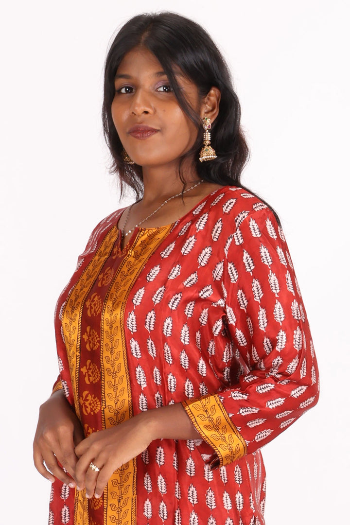 This stunning Red is the perfect choice for a special occasion. Lightweight, comfortable modal fabric is beautifully decorated with a handcrafted Bagh print. Look elegant and fashionable with this timeless, traditional style.
