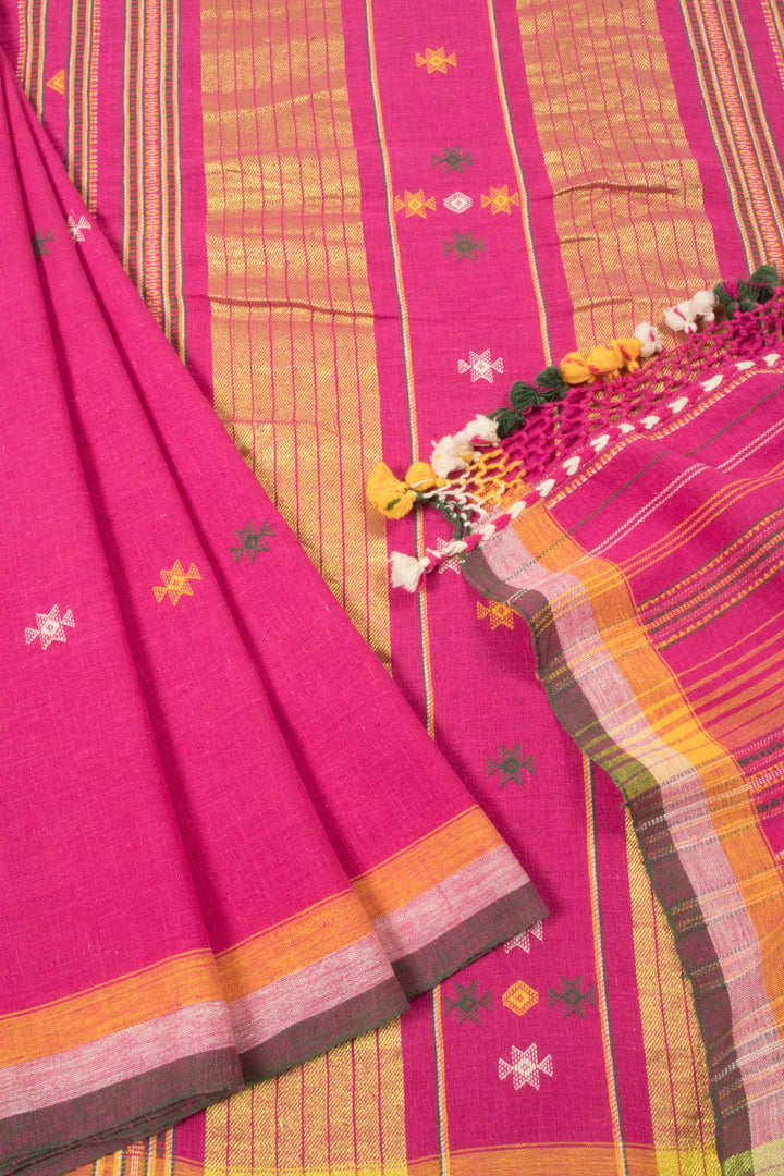 This Red Handloom Bhujodi Kala Cotton Saree is a perfect blend of traditional charm and modern style. Handcrafted with care and attention to detail, it features a vibrant red color and intricate Bhujodi design. Made with high-quality linen, this saree offers comfort and elegance for any occasion.
