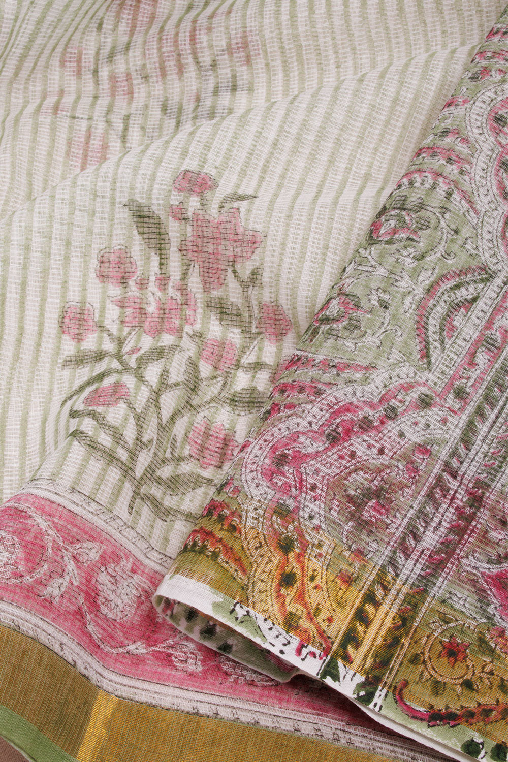 White Vanaspathi Printed Kota Cotton Saree 10068627