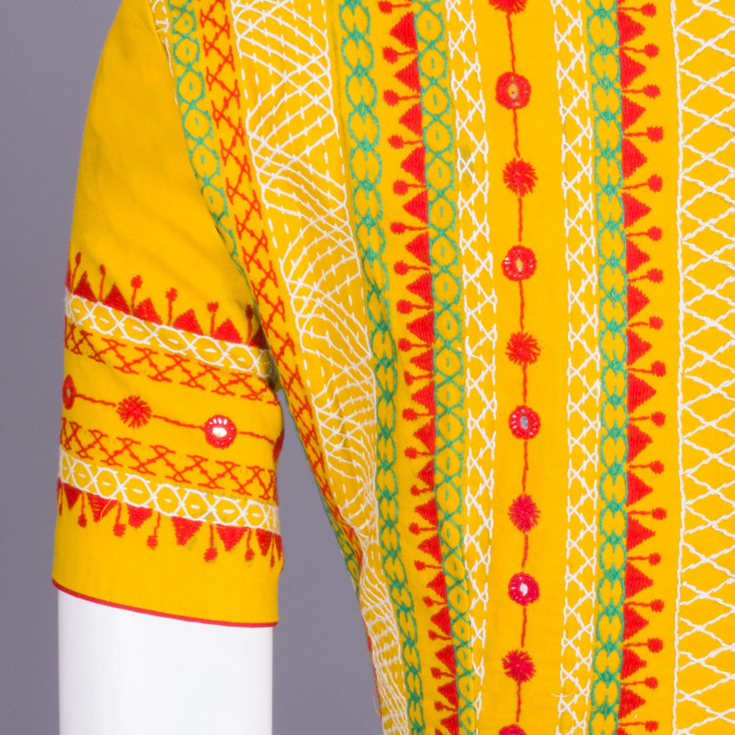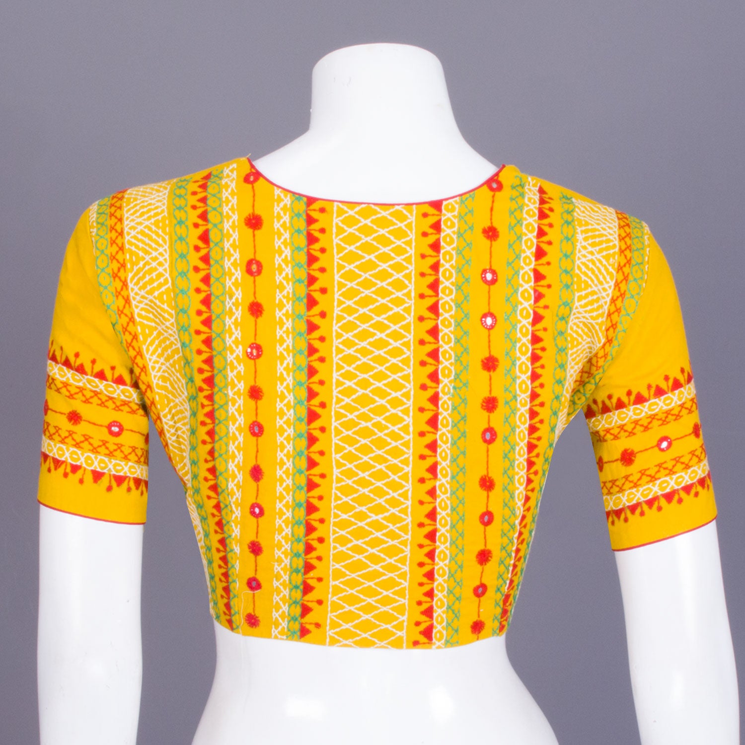 Yellow Kantha Embroidered Cotton Blouse 10068126